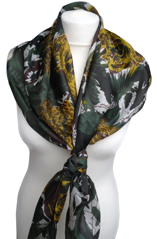 Dieses Seidentuch mit dem wilden Leo-Print ist einfach ein absolutes Must-Have für deine Accessoire-Sammlung! Aus feinster Seide gefertigt, fühlt es sich super luxuriös auf der Haut an und glänzt dezent - einfach nur schick! Der Animal-Print ist total im Trend, aber gleichzeitig zeitlos genug, dass du ihn auch in Jahren noch tragen kannst. Und so vielseitig! Du kannst es klassisch um den Hals binden, als cooles Haartuch tragen oder einfach lässig um deine Handtasche knoten. Egal ob zum Business-Outfit, zum Date oder einfach nur für den Alltag - dieses Tuch macht aus jedem Look was Besonderes! Die Qualität ist einfach top - keine fusselnde Billig-Seide, sondern richtig hochwertig verarbeitet. Die Farben sind kräftig und waschfest. Perfekt auch als Geschenk für die beste Freundin, Mama oder einfach für dich selbst! Einfach mal ausprobieren - du wirst überrascht sein, wie viele verschiedene Looks du mit diesem einen Tuch kreieren kannst. Und weil es so leicht ist, nimmst du es einfach überall mit. Passt in jede Handtasche und ist der perfekte Begleiter für unterwegs. Einfach ein Accessoire, das immer geht - egal zu welcher Jahreszeit!