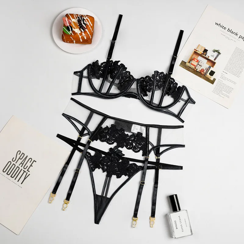 • 3-teiliges Set: BH, Strumpfband, Beinringe