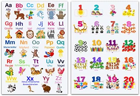 Yoosso ABC Lernposter 40x60cm - Alphabet, Zahlen & Tiere, Wasserdicht Für Kindergarten & Vorschule