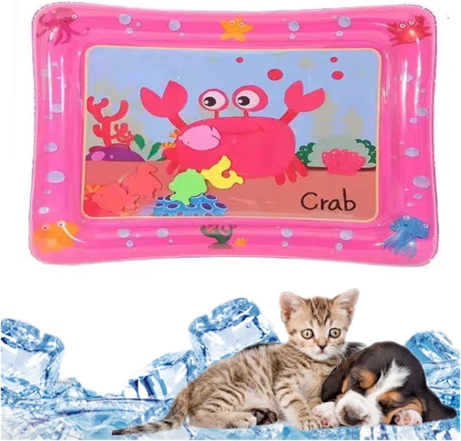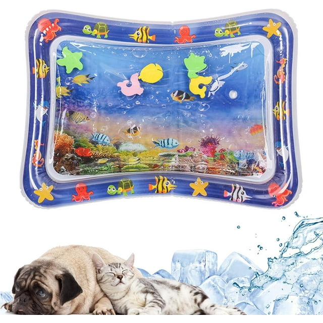 Deine Katze wird verrückt nach dieser Wasserspielmatte sein! Mit 65cm Durchmesser bietet sie genug Platz für ausgelassenes Spielen. Sobald deine Samtpfote die Matte berührt, reagiert das Wasser mit coolen Bewegungen - wie von Zauberhand! Hergestellt aus weichem PVC, absolut sicher für dein Tier. Du kannst sie entweder aufblasen oder mit Wasser füllen, je nachdem was deine Katze lieber mag. Das Design zeigt eine bunte Unterwasserwelt mit Fischen und Pflanzen - einfach faszinierend für neugierige Katzenaugen. Perfekt für heiße Sommertage zur Abkühlung, aber auch super für Kinder als Spielmatte. Achtung: Von scharfen Gegenständen fernhalten, damit sie nicht undicht wird. Einfach auf den Boden legen und zuschauen, wie deine Katze stundenlang beschäftigt ist - das beste Anti-Langeweile-Spielzeug ever!