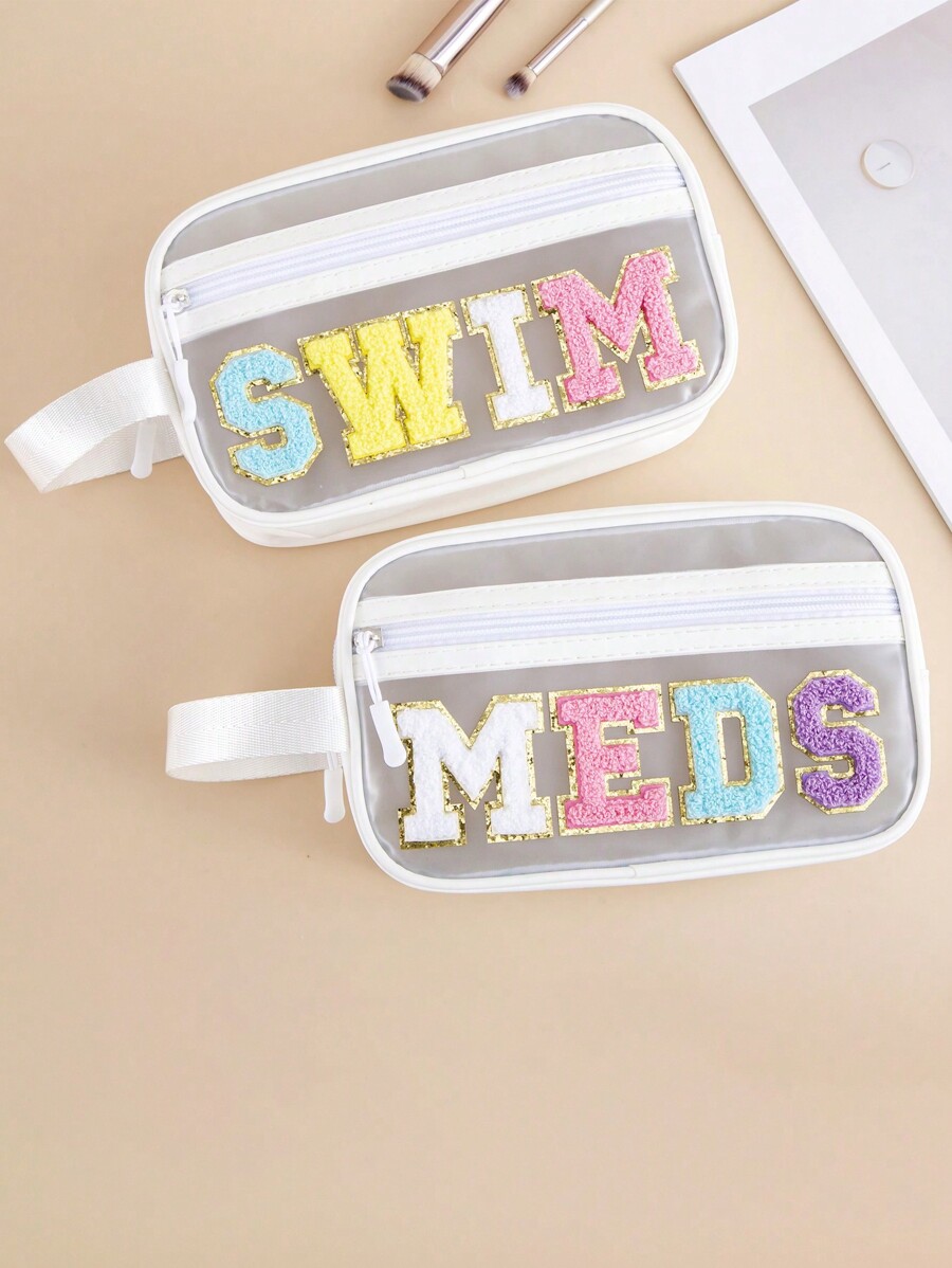 College-Stil Make-up-Tasche Chenille Letter - 3-teiliges Set Wasserdicht PU Leder