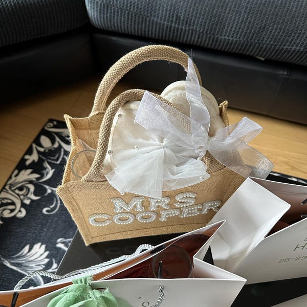 Oh wie süß! Diese Jute-Tasche mit 'BRIDE' Aufdruck ist perfekt für die Braut. Maße 35x25x13cm - riesige Kapazität für alle Hochzeits-Utensilien. Aus 100% natürlicher Jute - ökologisch und nachhaltig. Mit weißer Bandverzierung - sieht richtig edel aus. Praktische Knopf-Verschlüsse - einfach zu öffnen und schließen. In knalligem Gelb - die Braut fällt garantiert auf. Ideal für Junggesellinnenabschied, Hochzeit oder Flitterwochen. Passt für Geldbörse, Accessoires, Kosmetik und mehr. Auch als stylische Einkaufstasche verwendbar - vielseitig einsetzbar. Ein perfektes Geschenk für die beste Freundin oder Braut selbst. Mit soliden Griffen - bequem zu tragen. Macht die Brautzeit noch besonderer - mit diesem persönlichen Accessoire. Einfach bepacken und strahlen - mehr Braut-Glück geht nicht!
