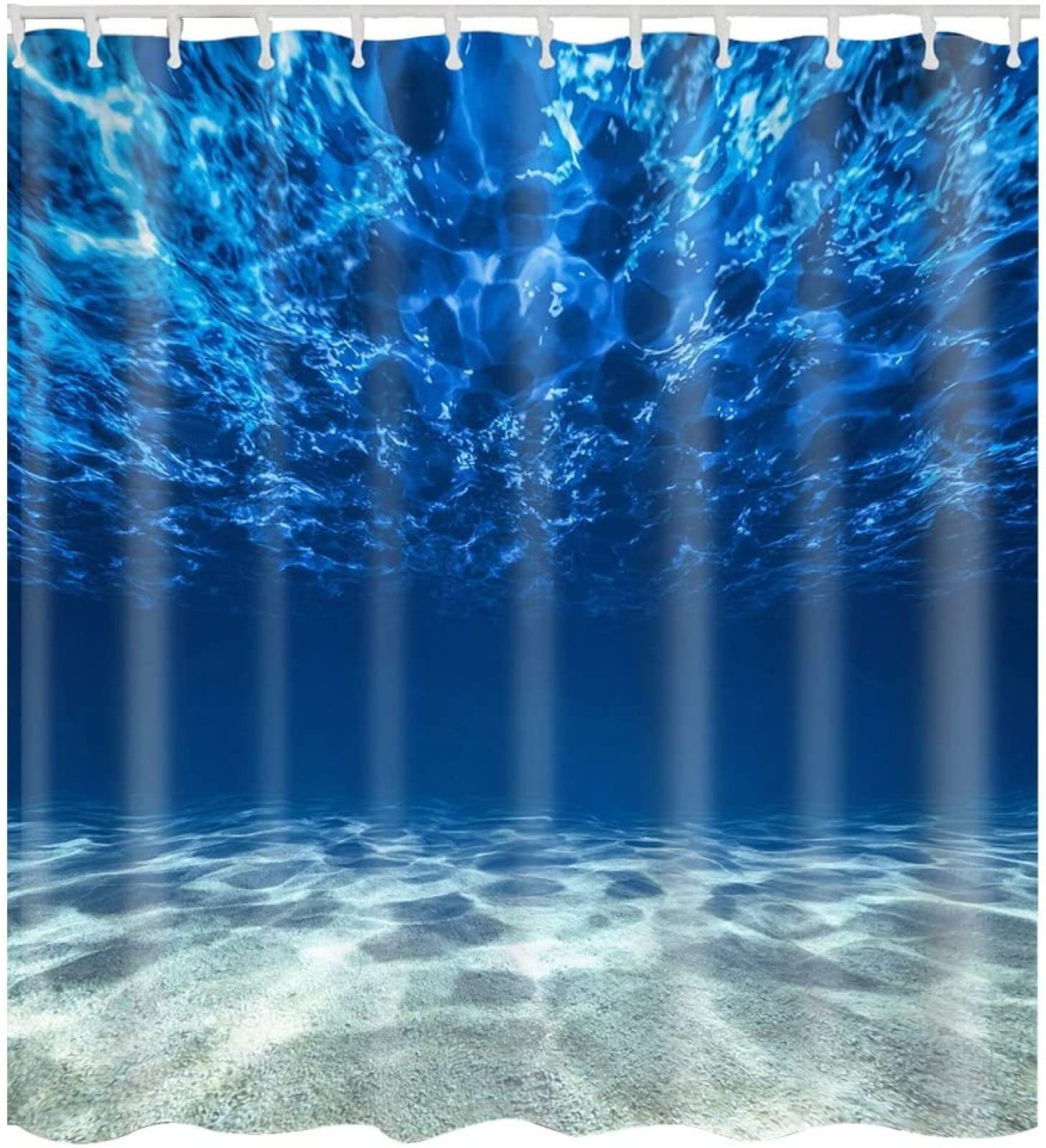 Ob fürs Gäste-WC oder dein tägliches Bad - dieser Duschvorhang bringt Urlaubsfeeling in dein Zuhause. Kombinier ihn mit ner passenden Duschvorhang-Innenhülle für noch mehr Stil. Einfach aufhängen und abtauchen in die Meereswelt!