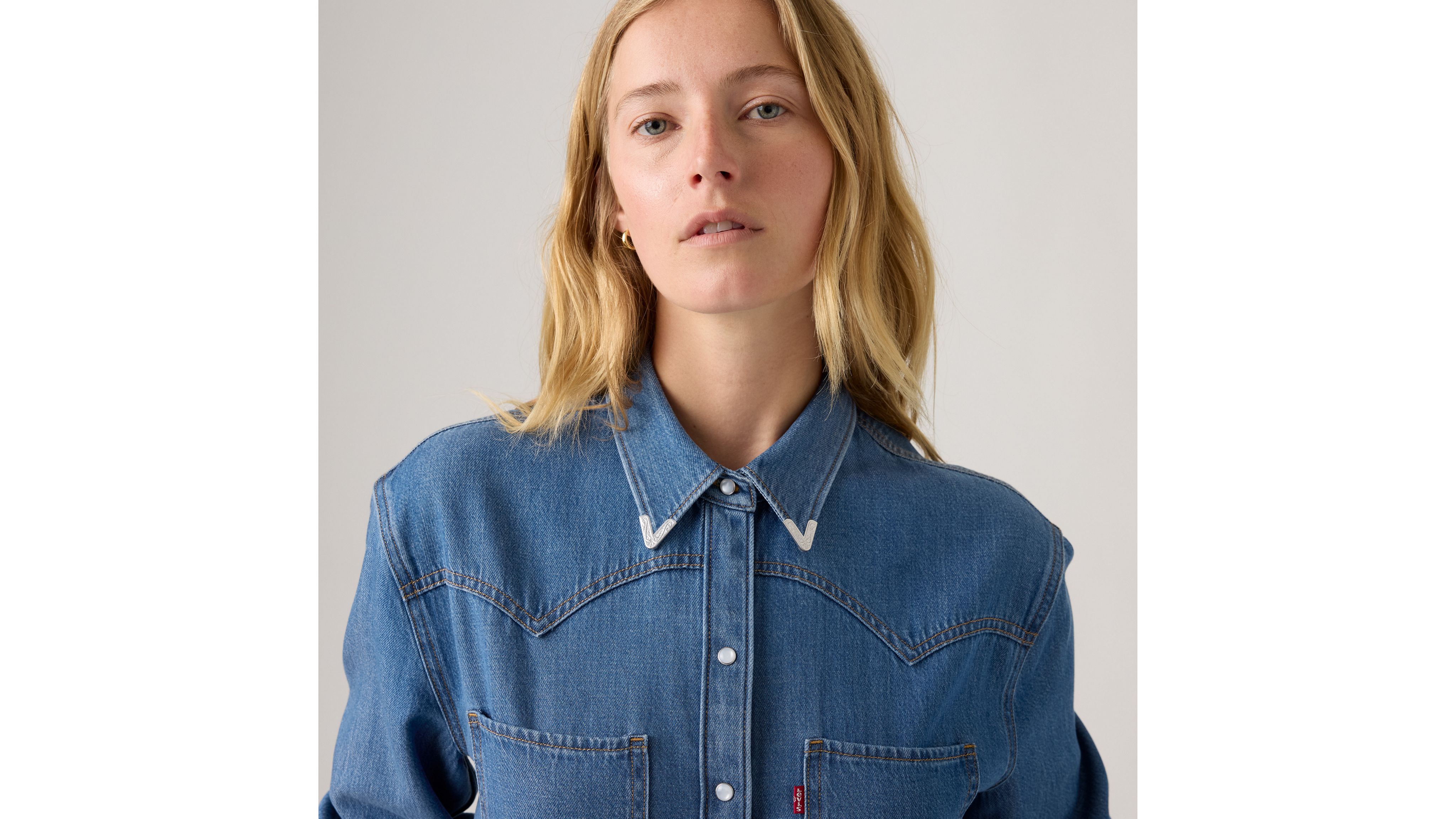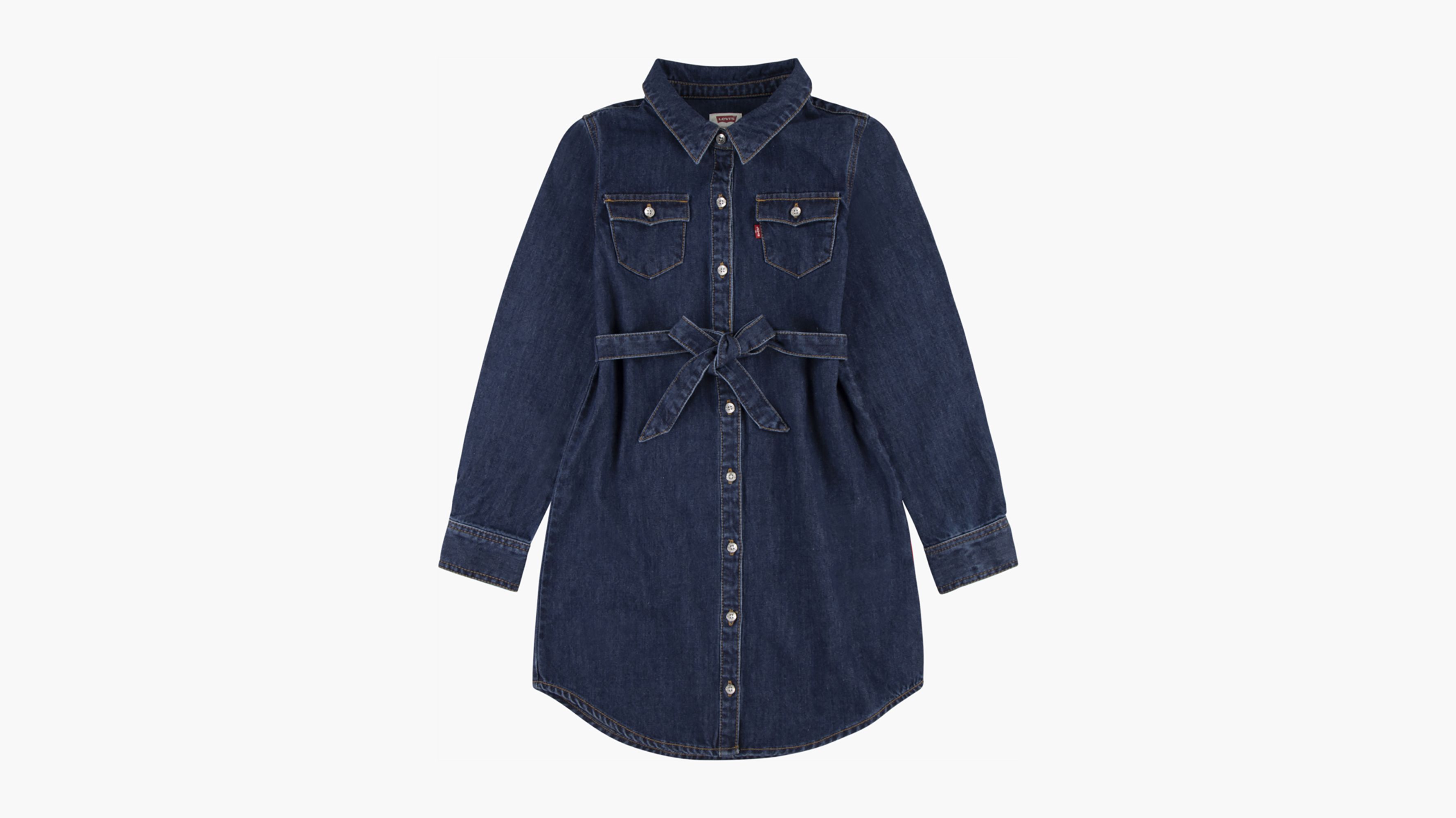 So süß! Dieses Levi's Western-Hemdkleid ist der Hit für kleine Fashionistas. Aus weichem Bio-Denim gefertigt, mit langen Ärmeln, klassischem Kragen und praktischem Knopfverschluss. Der integrierte Gürtel betont die Taille, der ausgestellte Rock sorgt für genug Bewegungsfreiheit zum Spielen. Mit Brusttasche und geknöpften Manschetten - einfach stylisch! Perfekt für Kindergarten, Spielplatz oder Familienfeiern. Das Lieblingsteil für die kommende Saison - bequem, langlebig und total niedlich. Deine Kleine wird es lieben!