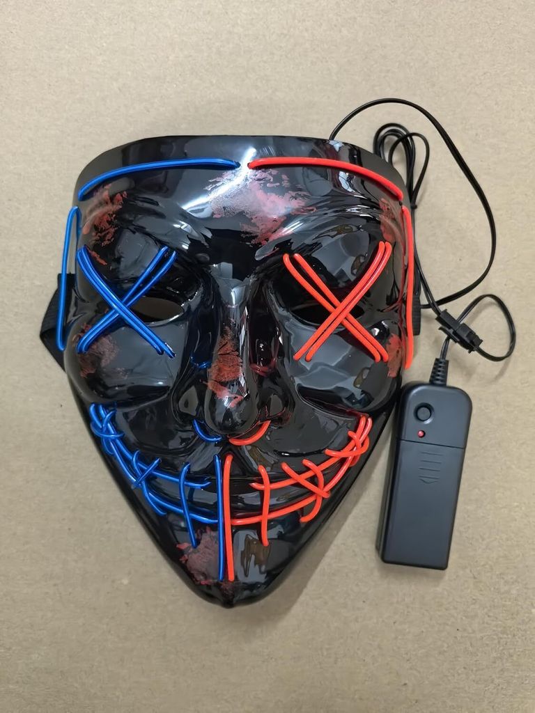 Wow, diese Maske ist der absolute Hingucker auf jeder Halloween-Party! Sobald du die LEDs einschaltest, wirst du zum gruseligsten Gast des Abends. Mit 3 verschiedenen Lichtmodi - Dauerlicht, langsames und schnelles Blinken - sorgst du für Gänsehaut pur. Die Maske passt dank verstellbarem Band fast jedem Kopf, ob Erwachsener oder Kind. Hergestellt aus hochwertigem PVC ohne komische Gerüche. Die Elektrolumineszenz-Drähte sind absolut sicher für die Haut. Perfekt für Karneval, Fasching oder Cosplay-Events. Einfach zwei AA-Batterien rein (nicht im Lieferumfang) und los geht der Gruselspaß!