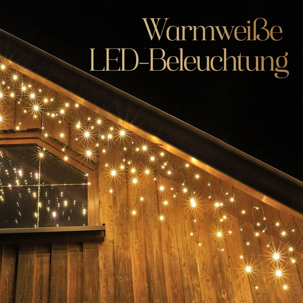 Mann, diese Solar-Lichterkette ist ja der Hammer! Ganze 30m lang mit 800 LEDs - und das komplett solar betrieben! Das Panel hat 2500mAh, also hält die Beleuchtung ewig. Du kannst zwischen warmweiß, bunt oder gemischt wählen - 8 verschiedene Modi stehen zur Verfügung. Mit Timer-Funktion (4/6/8 Stunden) und Fernbedienung, die in JEDE Richtung funktioniert! Wasserdicht für draußen, also perfekt für Weihnachten, Gartenpartys oder einfach als Deko. Bis zu 3 Stränge kannst du verbinden - stell dir vor, fast 100m Beleuchtung! Kein Stromkabel, keine Steckdose suchen - einfach in die Sonne legen und abends leuchtet es wie von Zauberhand. Die Eiszapfen sehen übrigens mega echt aus und bringen richtig Winterstimmung in deinen Garten. Egal ob für die Fassade, Bäume oder Terrasse - diese Lichterkette verwandelt deinen Garten in ein Märchenland! Und das Beste: Keine Stromkosten!