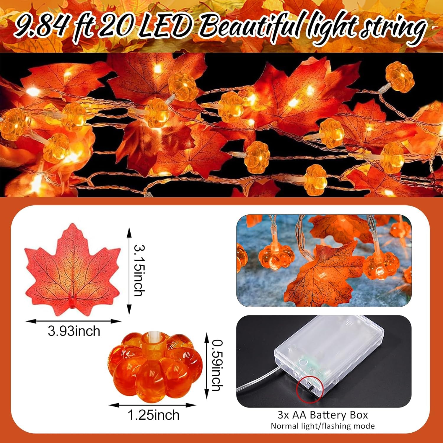 Boah, diese Herbst-Lichterkette von KOBOKO ist einfach mega schön! 3 Meter lang mit 20 warmweißen LEDs - taucht jeden Raum in gemütliches Licht. Mit niedlichen Kürbissen und Ahornblättern - total herbstlich! Läuft mit 3 AA-Batterien (nicht dabei) - also super flexibel, keine Steckdose nötig. Der Kupferdraht ist total biegsam - du kannst ihn in jede Form bringen! Perfekt für Tische, Fenster, Treppen oder den Kamin. Zwei Modi: Dauerlicht oder Blinken - je nach Stimmung. Wasserdichte LEDs, aber Achtung: Batteriebox trocken halten! Ideal für Herbstdeko, Erntedankfest oder Halloween-Party. Macht sofort gemütliche Stimmung! Einfach aufhängen, Batterien rein und den Herbst genießen. Dein Zuhause wird zum echten Wohlfühlort - probier's aus!