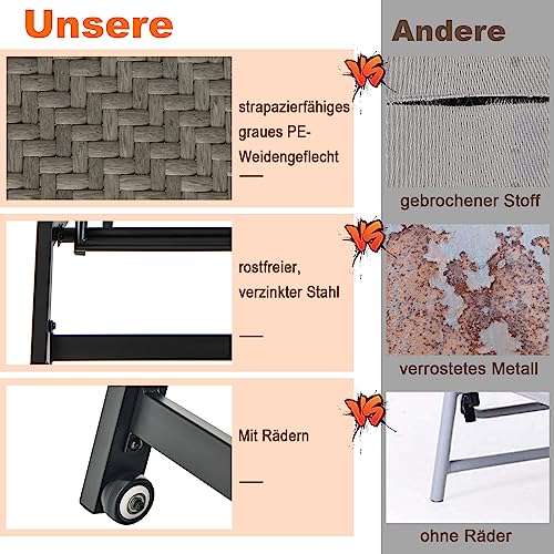 Entspannung pur mit dieser praktischen Sonnenliege! Der ChillWell Liegestuhl bietet 3-stufige Verstellung per Knopfdruck - inklusive Beinhochlagerung für bessere Durchblutung und Rückenentlastung. Mit integriertem Mini-Tisch mit Getränkehalter und Handyfach hast du alles griffbereit. Das ergonomische Kopfkissen sorgt für extra Komfort. Aus wasserfestem, UV-beständigem Textilene und pulverbeschichtetem Stahl ist die Liege extrem robust und witterungsbeständig. Zusammengeklappt platzsparend für Terrasse, Balkon, Strand oder Camping. Bis 120 kg belastbar - dein perfekter Begleiter für sonnige Tage!
