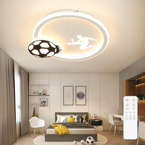 Tor! Diese coole Deckenleuchte bringt Fußball-Feeling direkt ins Kinderzimmer. Der 3-flammige Strahler in kräftigem Grün mit Fußball-Motiven ist der absolute Hingucker für junge Kicker. Die schwenkbaren Köpfe kannst du individuell einstellen - ob du nun die ganze Ecke ausleuchten oder bestimmte Bereiche betonen willst. Enthalten sind bereits 3x LED-Leuchtmittel mit je 3 Watt, 300 Lumen und warmweißem Licht (3000 Kelvin) - energiesparend und gemütlich. Das beste: Die Leuchtmittel sind ganz easy auswechselbar, falls mal was kaputt geht. Die Metallkonstruktion ist robust und sämtliches Montagematerial liegt bei - für Wand oder Decke. Mit 31cm Durchmesser macht die Leuchte was her, ohne zu dominant zu wirken. Perfekt, um das Zimmer deines kleinen Fußballstars stilvoll zu gestalten und gleichzeitig für optimale Beleuchtung zu sorgen. Einfach montieren, anschalten und sich wie im Stadion fühlen!