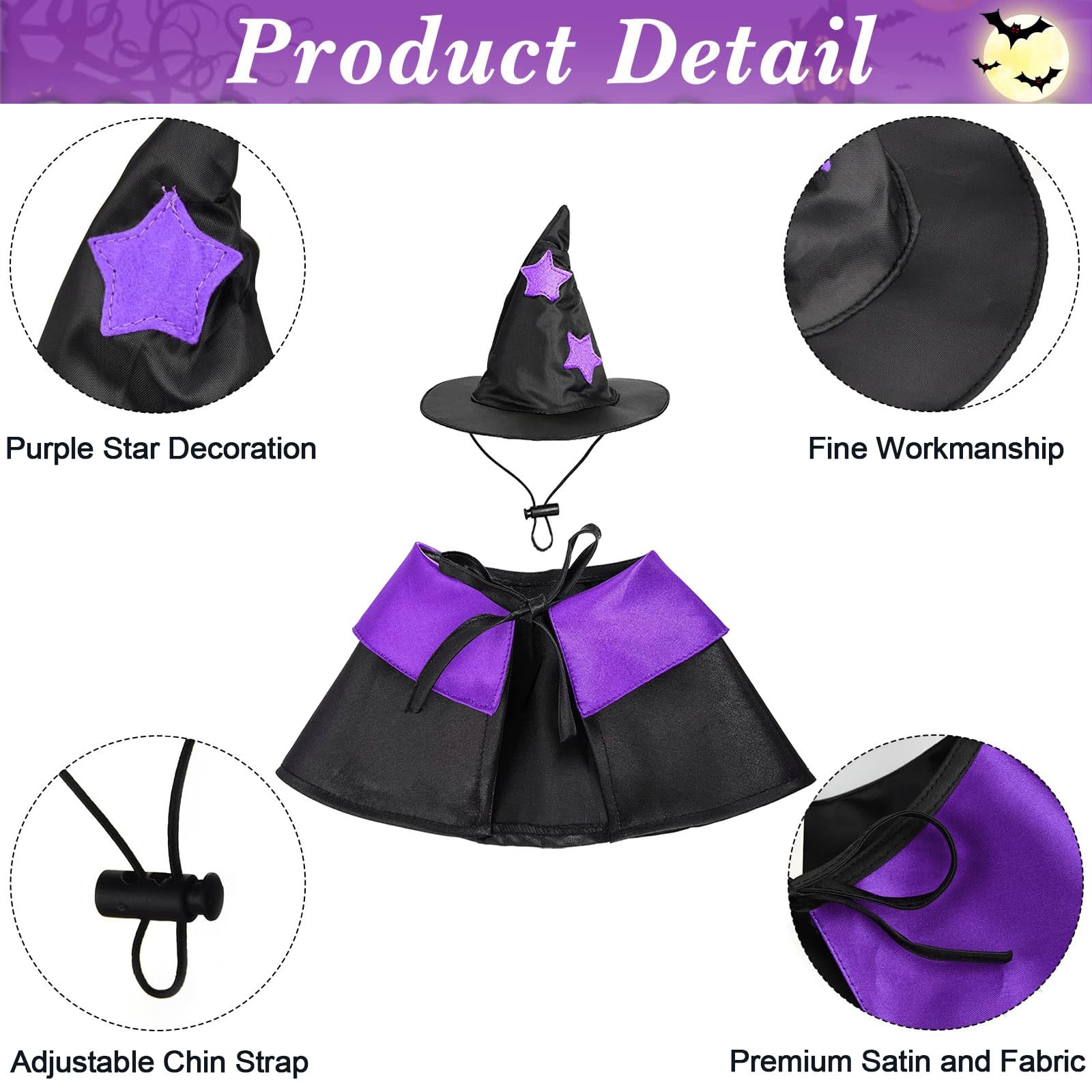 Hui, was für eine süße Hexe! 🧙♀️ Dein Hund wird der Star jeder Halloween-Party mit diesem entzückenden Kostüm!\n\nDas Set kommt komplett mit Hexenhut (mit grüner Perücke!) und passendem lila Umhang. Der Hut hat ein cooles Spinnennetz-Muster und eine elastische Schnalle für perfekten Sitz.\n\nAus weichem, hautfreundlichem Stoff - dein Liebling fühlt sich pudelwohl und kann das Outfit auch länger tragen. Der Umhang hat Bindebänder, damit er sicher sitzt.\n\nPerfekt für kleine bis mittelgroße Hunde (Hut: 15x18cm). Einfach anziehen und schon verwandelst du deinen Vierbeiner in eine zauberhafte Hexe!\n\nNicht nur zu Halloween super - auch für Cosplay-Partys, Fotoshootings oder einfach mal so für Spaß. Dein Hund wird Aufmerksamkeit ernten, wo immer ihr hingeht!\n\nHandwäsche empfohlen für lange Freude. Schau vor dem Kauf in die Größentabelle - dann steht dem Hexenspaß nichts mehr im Weg! 🎃 Bereit für unheimlich süße Fotos?