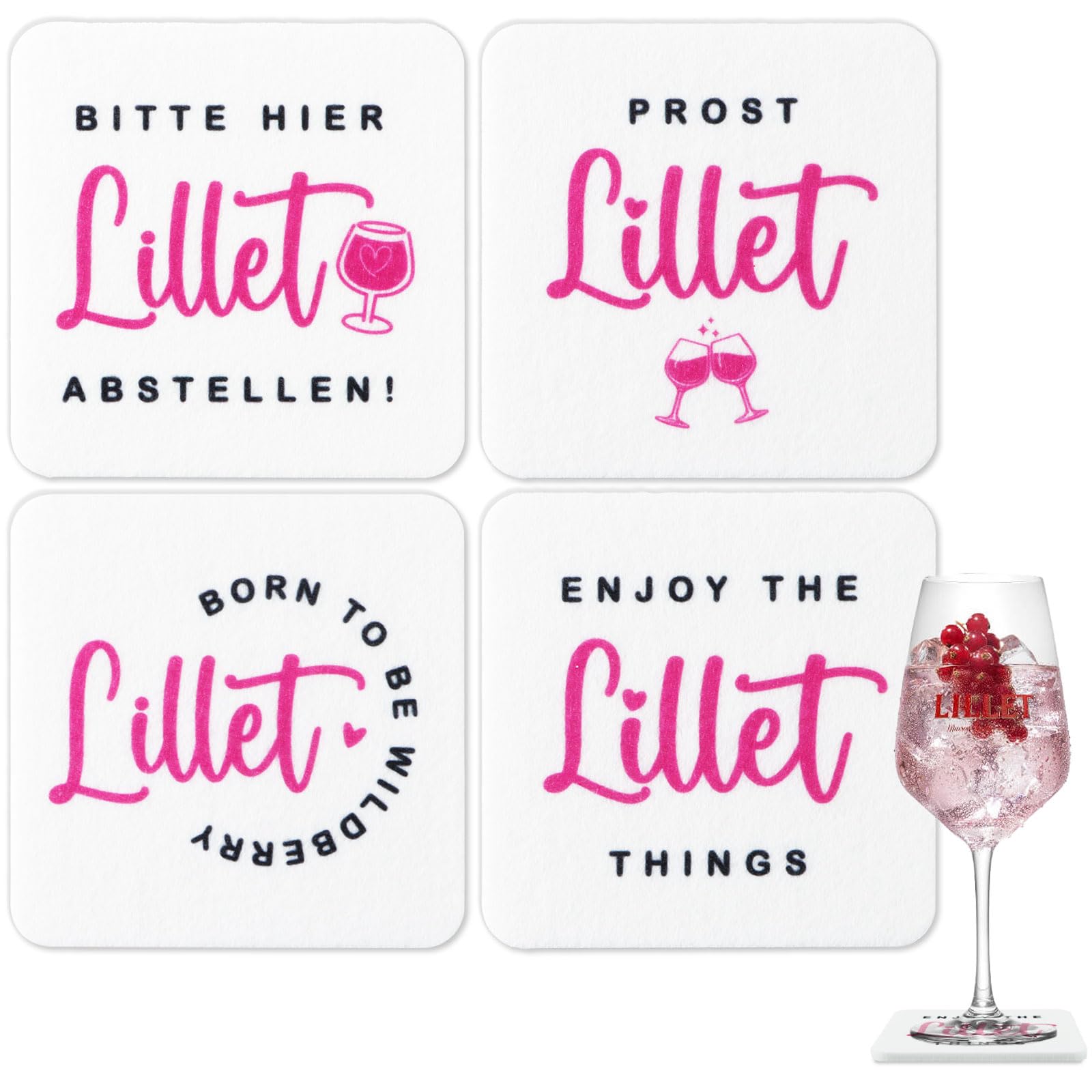 • 8 Stück Lillet Untersetzer Filz - Deko Set Für Cocktail Liebhaber