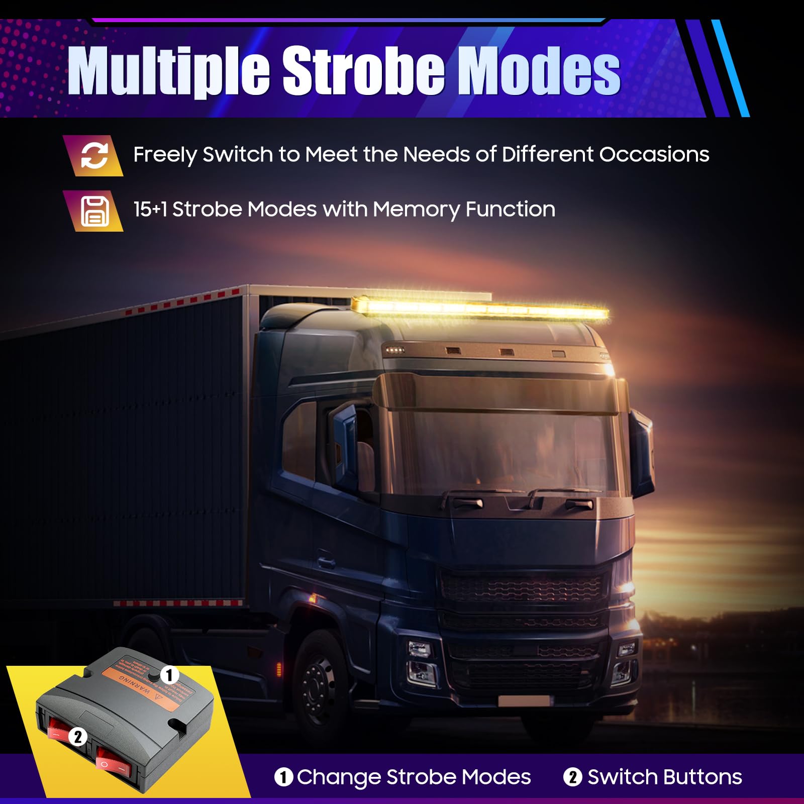 Achtung, hier kommt Sicherheit! Dieser massive Warnbalken mit 96 LEDs und 1310mm Länge sorgt für maximale Sichtbarkeit. Mit 16 Blinkmodi (15 Blink- + 1 Dauerlicht) und Fernbedienung voll kontrollierbar. Wasserdicht nach IP65, also perfekt für Regen, Schnee und alle Wetterlagen. Die 3,8m Kabel geben dir genug Spielraum für flexible Montage. Ideal für Abschleppwagen, Baustellen oder Sicherheitsfahrzeuge. Einfache DIY-Installation ohne komplizierte Umbauten. Mit 50.000 Stunden Lebensdauer und nur 96W Verbrauch sowohl effizient als auch langlebig. Sicherheit die man sieht!