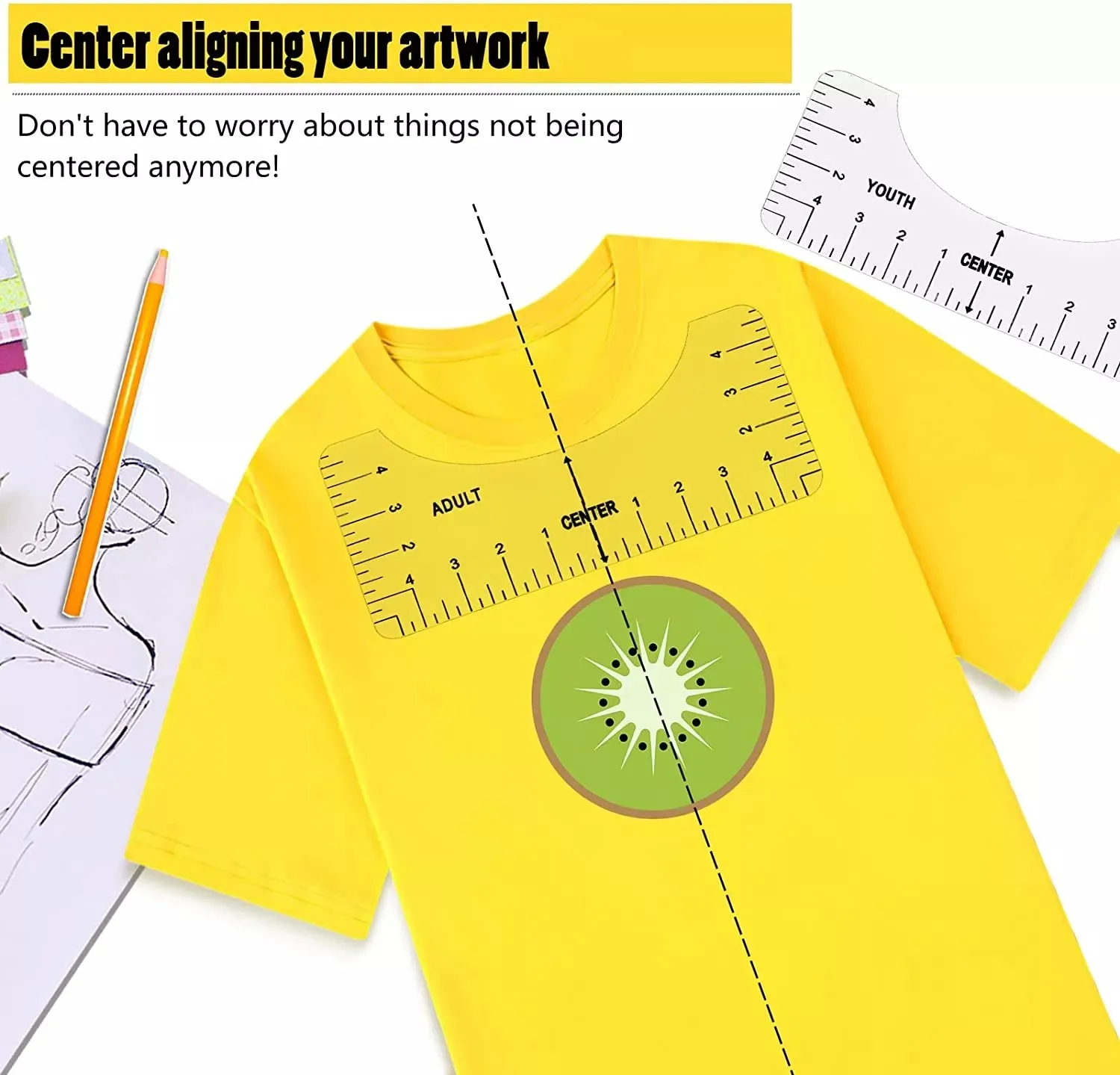 Hey, wenn du T-Shirts bedruckst oder bemalst, ist dieses Lineal-Set ein Game-Changer! 5 verschiedene Größen - für alle T-Shirt-Größen von klein bis groß. Aus transparentem PVC - siehst genau, was du machst. Perfekt um Designs genau zu zentrieren - ob auf der Brust, am Kragen oder wo auch immer. Spart dir stundenlanges Gefummel und Messen. Auch für Hosen, Röcke und andere Textilien geeignet. Einfach das passende Lineal nehmen, anlegen und du weißt genau wo dein Design hin muss. Professionelle Ergebnisse ohne Profi-Werkzeug - einfach genial!
