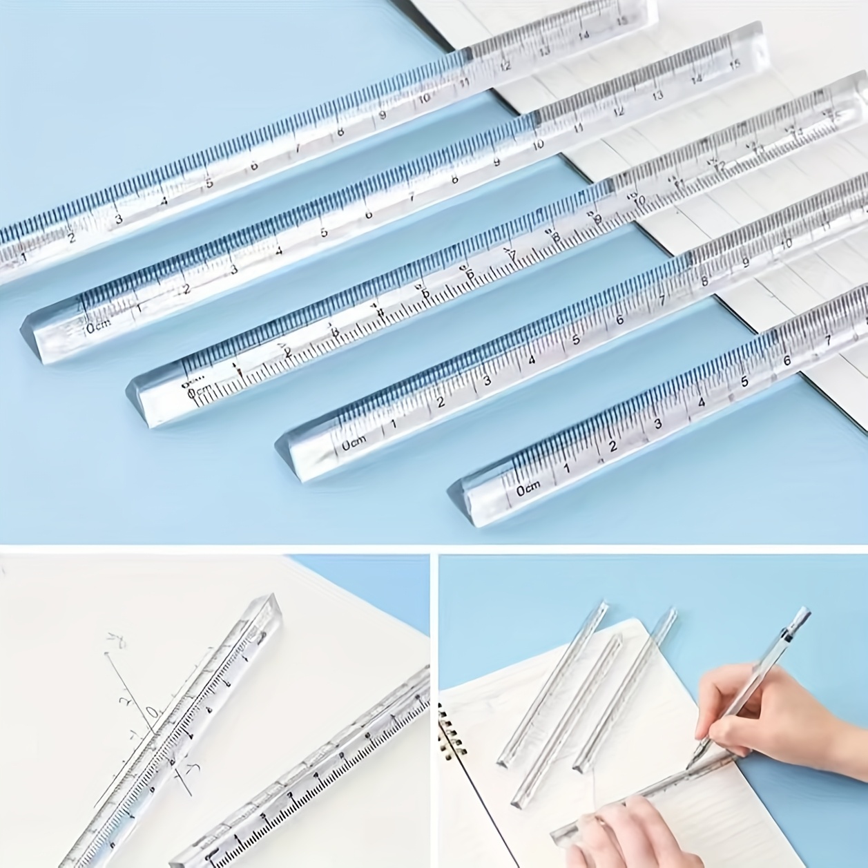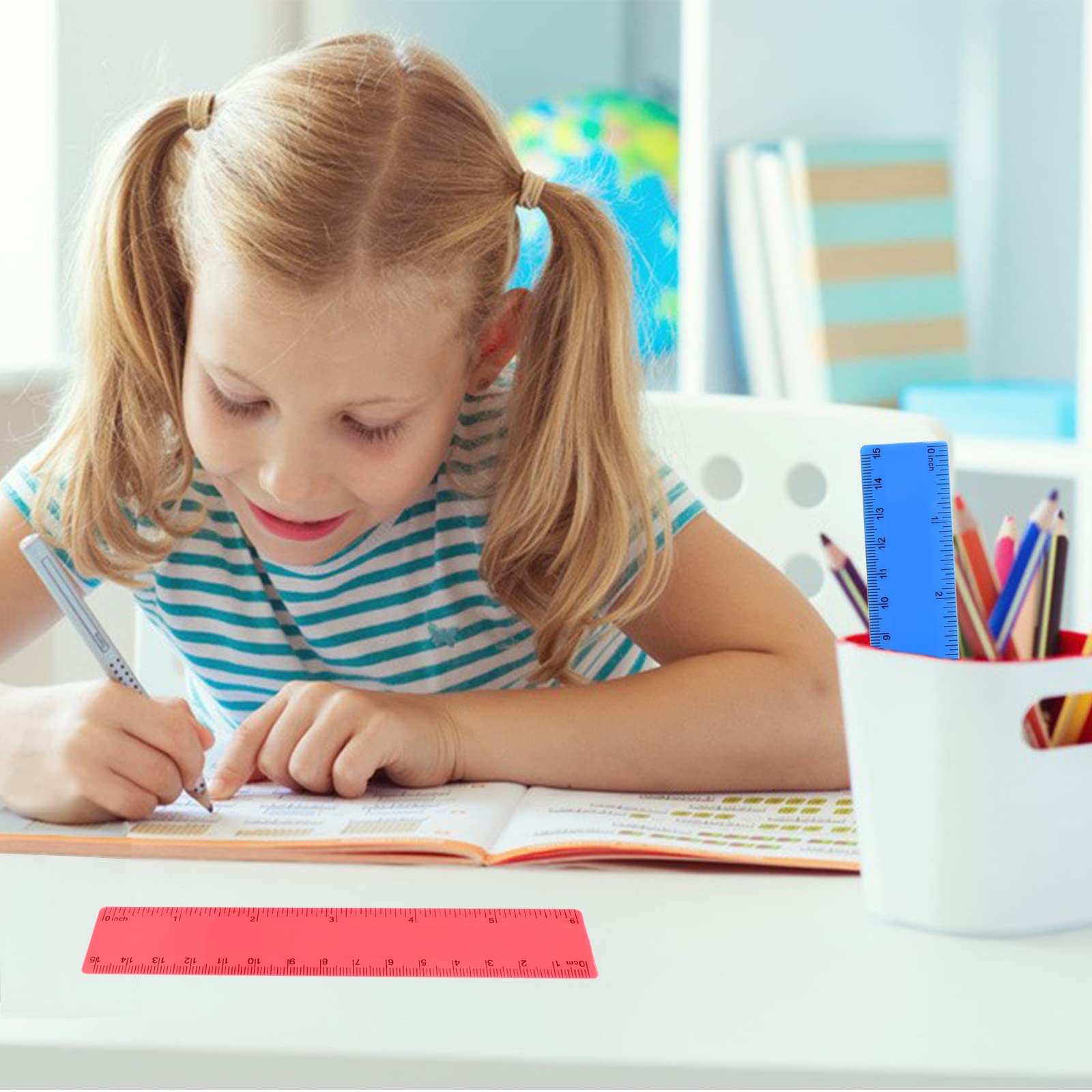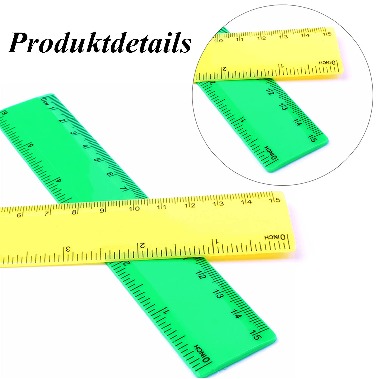 Perfekt für Schule, Büro oder Bastelprojekte! Dieses Set mit 25 bunten Linealen hat für jeden Anlass das passende Maßwerkzeug dabei. Jedes Lineal ist 15,7cm lang und 3cm breit - handlich aber dennoch praktisch.\n\nDie durchsichtigen Lineale gibt's in 6 verschiedenen Farben: Weiß, Rot, Rosa, Gelb, Grün und Blau. So kannst du sie nach Themen sortieren oder einfach nach Lust und Laune verwenden.\n\nSuper praktisch: Beide Skalen sind drauf - Zentimeter UND Zoll! Kein langes Umrechnen mehr. Die schwarzen Markierungen sind gut lesbar, auch für Kinder.\n\nWeil sie durchsichtig sind, siehst du genau, was du unterstreichst oder abmisst. Perfekt zum Lernen, Zeichnen oder für Handwerksprojekte.\n\nAus robustem Kunststoff - verzieht sich nicht und bricht nicht so leicht. Wenn mal eines verloren geht - kein Problem, du hast ja noch 24 andere! Ideal für Lehrer, Schüler oder einfach für zu Hause.
