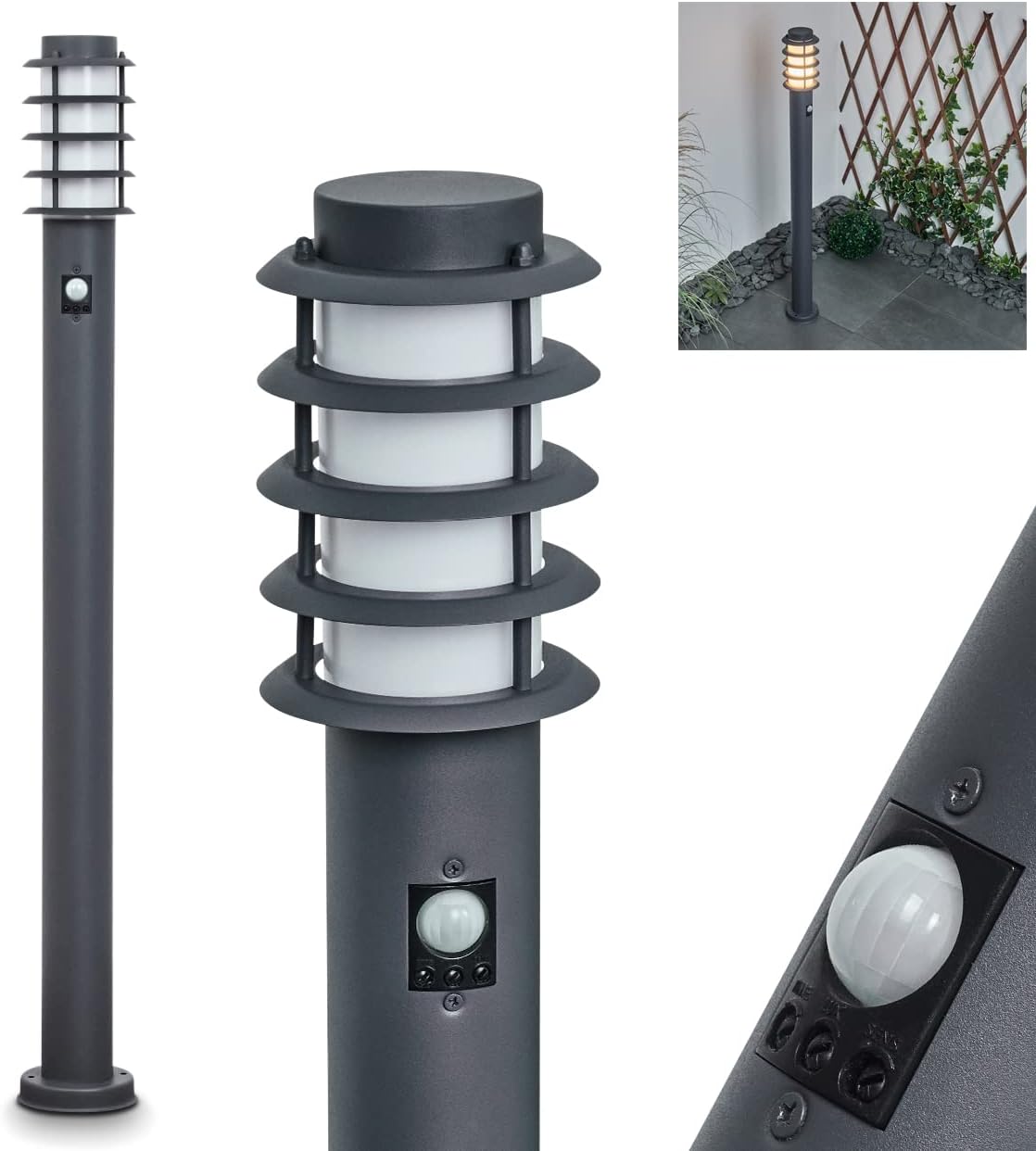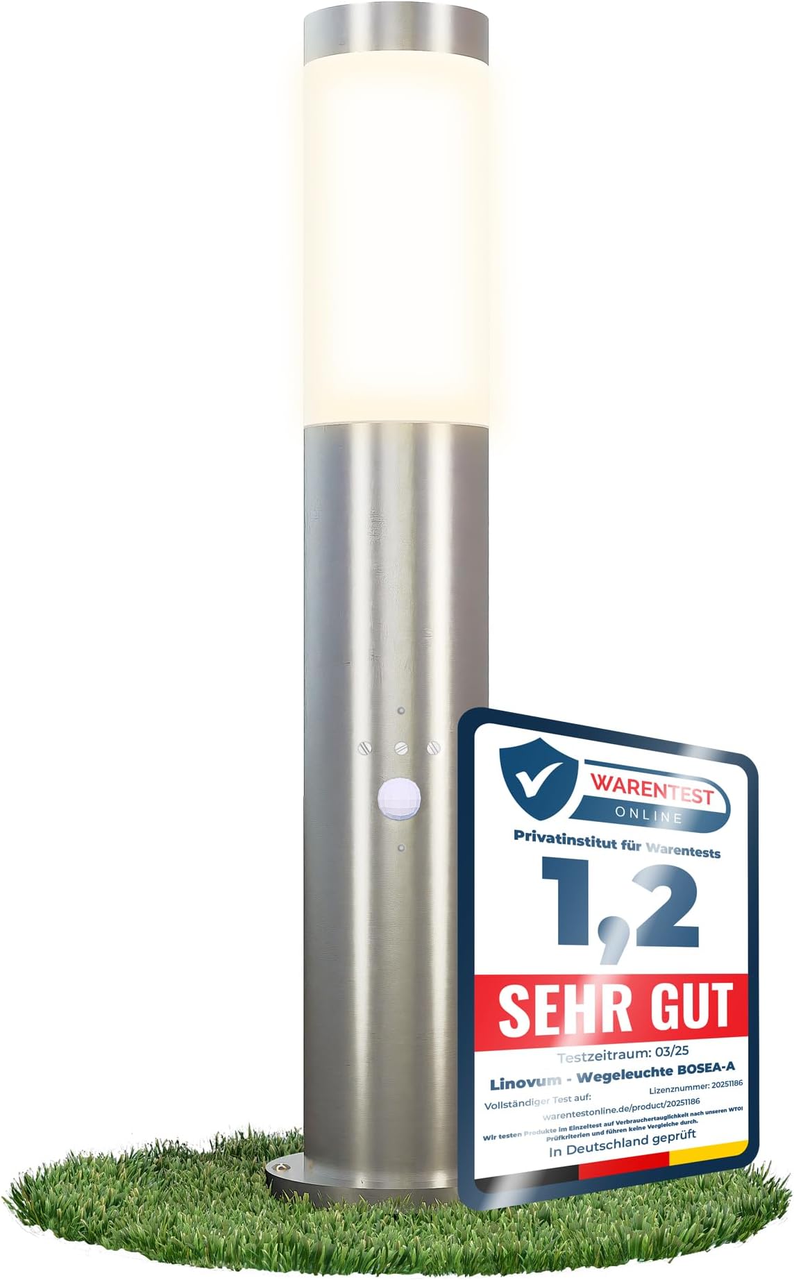 Stylische Beleuchtung mit praktischem Mehrwert! Diese elegante Standleuchte aus Edelstahl bringt Licht in deinen Garten und schaltet sich automatisch ein, wenn's dunkel wird. Mit integriertem Bewegungsmelder, der von 2-8 Meter Entfernung einstellbar ist und einen 100° Erfassungsbereich hat. Der Dämmerungssensor sorgt dafür, dass das Licht bei Einbruch der Dunkelheit automatisch angeht und morgens wieder ausgeht. Die Leuchtdauer lässt sich von 10 Sekunden bis 5 Minuten einstellen. Im Inneren verbirgt sich eine E27-Fassung für alle handelsüblichen Birnen (nicht im Lieferumfang). Mit 50 cm Höhe und IP44 Schutz ist sie perfekt für Wege, Terrassen und Gärten. Inklusive Montagematerial für Bodenbefestigung - Erdspieß separat erhältlich. So geht moderne Außenbeleuchtung!