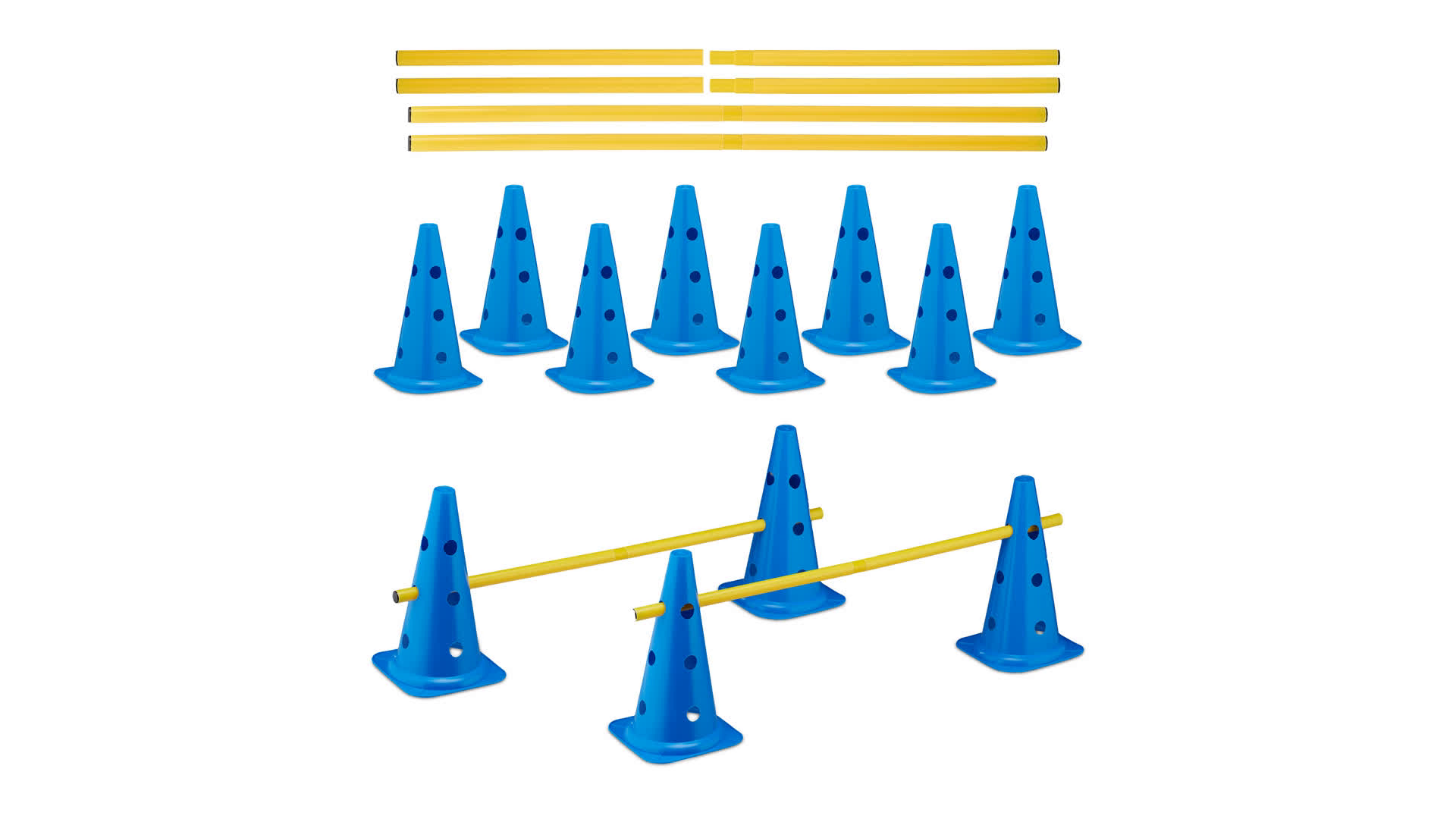 Perfekt für alle, die ihr Training aufpeppen wollen! Das Lisaro Steckhürden-Set kommt mit 10 knallorangenen Hütchen und 5 robusten Trainingsstangen à 100 cm. Macht einfach Laune, ob du Fußball, Handball oder Leichtathletik trainierst – oder sogar deinen Hund forderst. Die Hütchen haben drei verschiedene Höhen (8, 14 und 20 cm), also super flexibel für Kids, Erwachsene oder Vierbeiner. Aus bruchsicherem Kunststoff, super stabil und langlebig – hält auch bei heftigem Outdoor-Einsatz problemlos durch. Ideal für Verein, Schule oder Garten. Mach dein Workout abwechslungsreicher und fördere spielerisch Koordination, Schnelligkeit und Beweglichkeit. Einfach aufbauen, loslegen und Spaß haben!