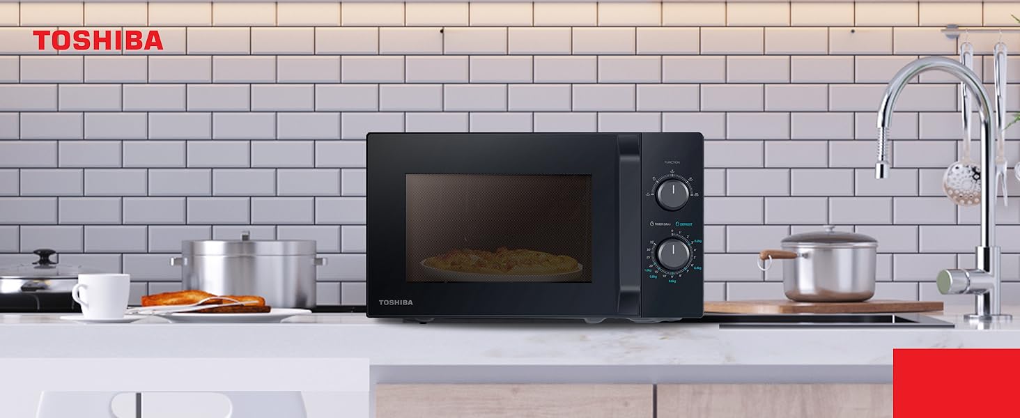 Boah, diese Toshiba Mikrowelle ist echt praktisch! Mit 20 Litern Fassungsvermögen passt da ganz schön was rein - ob Teller oder Schüssel. Die 800 Watt Leistung und 5 Stufen sorgen dafür, dass alles gleichmäßig durchgewärmt wird. Und das Beste: Sie ist super kompakt mit nur 44x35,7x25,9 cm (LxBxH) - passt also auch in kleinere Küchen. Das schwarze Design sieht dabei richtig schick aus! Der Drehteller hat 25,5 cm Durchmesser und dreht sich schön gleichmäßig. Zwei einfache Tasten und ein gut lesbares Display machen die Bedienung zum Kinderspiel. Die rutschfesten Füße sorgen für stabilen Stand. Einfach ein zuverlässiger Begleiter für jeden Tag - ob zum Aufwärmen vom Vortag oder für schnelle Mahlzeiten. Toshiba Qualität made in Germany, da kann man sich drauf verlassen!