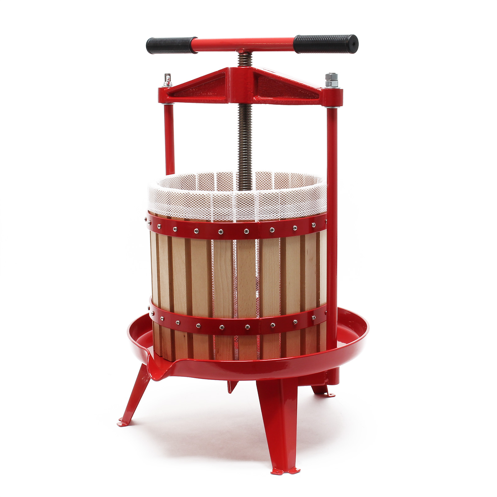 Eigenen Saft pressen war noch nie so einfach! Die KuKoo Obstpresse mit 12 Liter Fassungsvermögen verwandelt dein Obst in köstlichen, frischen Saft. Aus massiver Eiche und robustem Stahl gefertigt, ist diese Presse ein echter Klassiker für Generationen. Die mechanische Spindel macht das Pressen kinderleicht - einfach den Griff drehen und zusehen, wie der Saft fließt. Im Lieferumfang sind 3 praktische Presstücher enthalten, die Kerne und Fruchtfleisch zuverlässig herausfiltern. Ohne Strom und Kabel - perfekt für den Einsatz im Garten oder auf der Terrasse. Mit 60cm Höhe und 38cm Breite ist sie handlich genug für den mobilen Einsatz. Hol dir den Geschmack von frisch gepresstem Saft direkt aus deinem Garten!