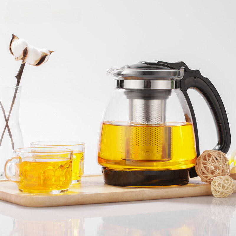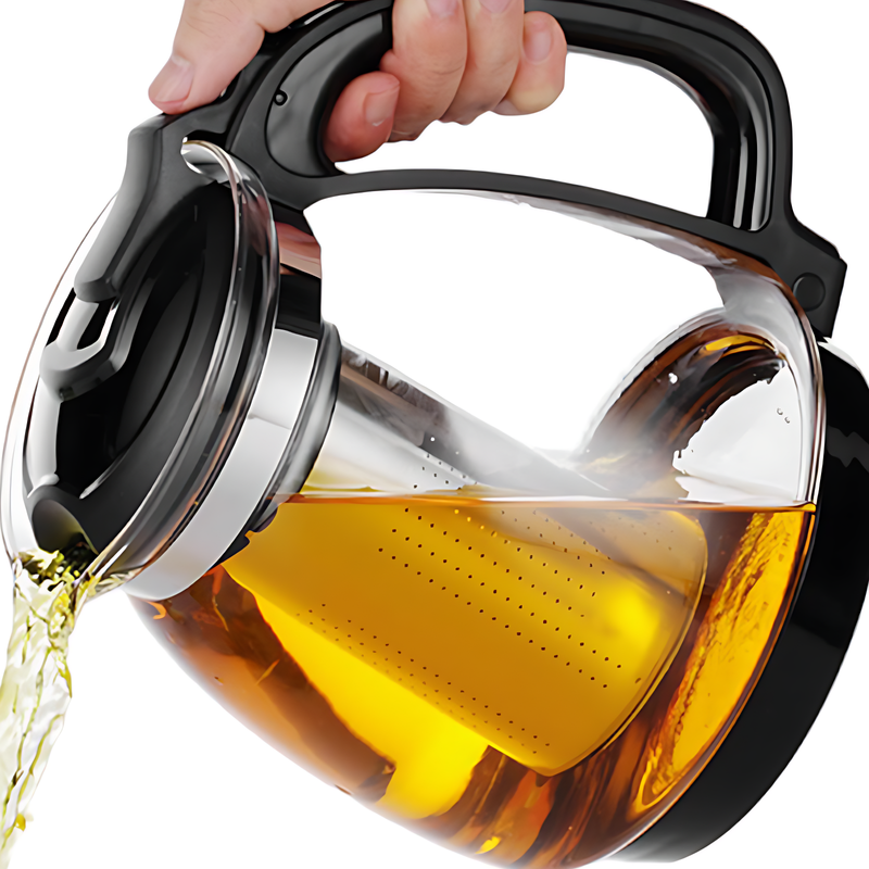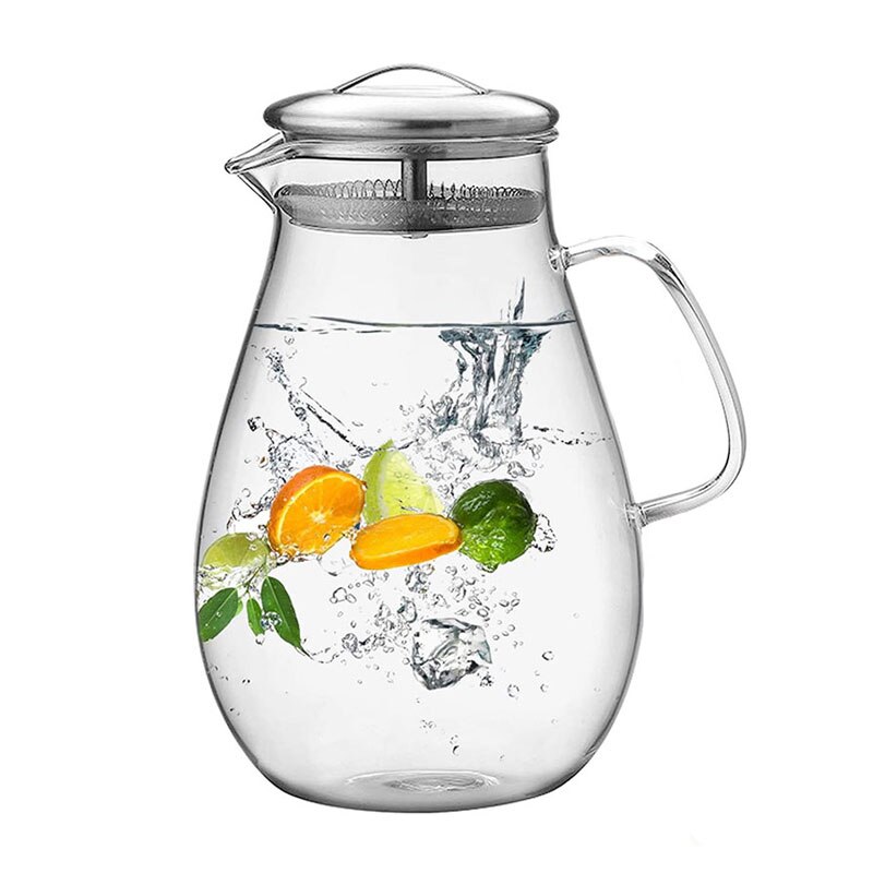 Perfekt für alle, die gerne Gäste bewirten! Dieser elegante Glaskrug mit 2,5 Liter Fassungsvermögen ist dein vielseitiger Begleiter in der Küche. Ob eiskalte Limonade im Sommer, heißer Tee im Winter oder frisch gepresste Säfte - der Krug aus hitzebeständigem Borosilikatglas hält Temperaturen bis 180°C problemlos aus. Der Edelstahldeckel sorgt für vollen Aromaschutz und der tropffreie Ausguss macht das Einschenken zum sauberen Vergnügen. Mit dem griffigen Design liegt der Krug super in der Hand, und die ausgewogene Balance verhindert lästiges Kippen. Perfekt für Zuhause, Restaurant oder Büro - einfach den breiten Hals zur leichten Reinigung nutzen. Ein echter Allrounder, der nicht nur praktisch ist, sondern auch noch stylisch aussieht! Ob für die Kaffeetafel, die Gartenparty oder einfach für den täglichen Gebrauch - mit diesem Krug bist du immer bestens ausgestattet.