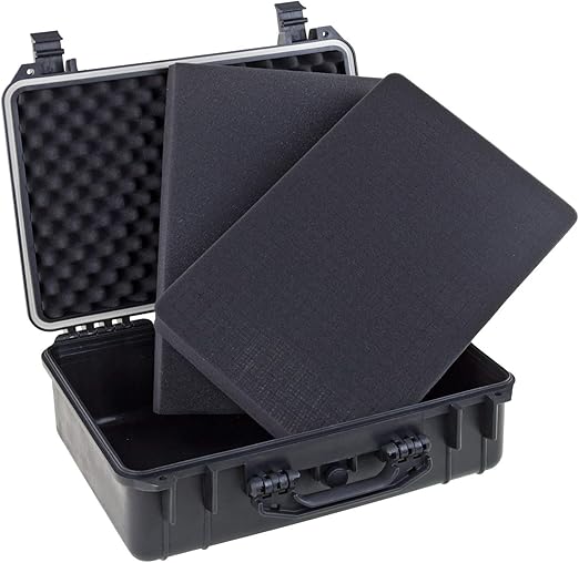 Transportiere deine wertvollen Geräte sicher und geschützt! Dieser BUZE Profikoffer aus robustem Polyethylen ist ein echter Allrounder für unterwegs. Mit 20 Liter Volumen und den Innenmaßen 425x284x153mm findet alles Platz - ob Kamera-Equipment, Messgeräte oder andere empfindliche Elektronik. Der Koffer ist absolut wasserdicht (bis 4 Meter!), staubdicht und luftdicht. Besonders praktisch: Die mitgelieferten Schaumstoffeinsätze mit Noppenstruktur und Würfelfeldern kannst du individuell an dein Transportgut anpassen. So liegt alles sicher und fest an seinem Platz. Der Koffer ist laugen- und säurebeständig, temperaturstabil und hat einen Luftdruckausgleich. Mit dem ergonomischen Handgriff trägst du ihn bequem, und durch die 2-fach Schließung (abschließbar mit Vorhängeschlössern) ist dein Equipment bestens gesichert. Bei 3,4kg Gewicht und den Außenmaßen 470x357x176mm ist er handlich aber dennoch robust. Ein echter Profi-Koffer zum unschlagbaren Preis - probier ihn aus!