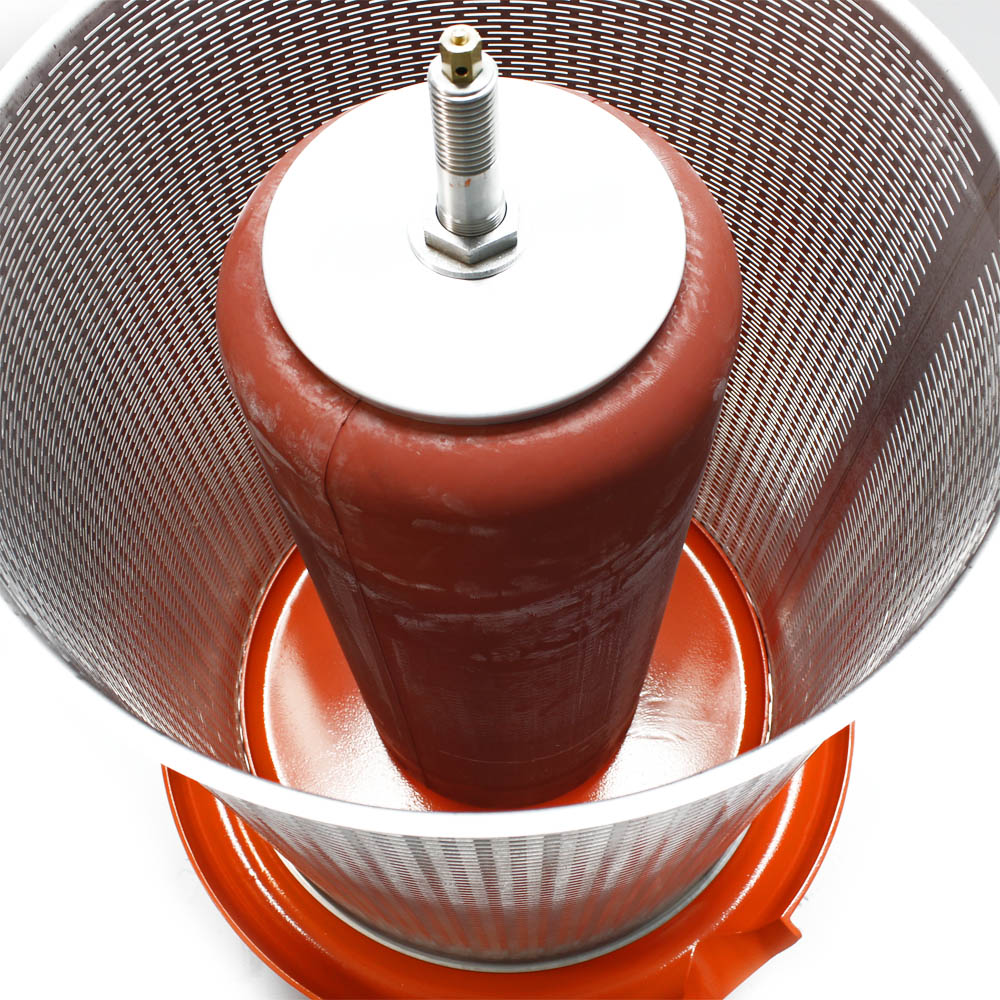 Funktioniert mit normalem Wasserdruck (ab 2 bar) - keine mĂŒhsame Handarbeit nötig! Bis zu 80% Saftausbeute und trockenes Pressgut.