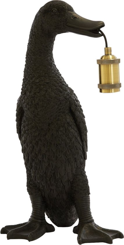 Diese entzückende Enten-Lampe bringt Lustigkeit in dein Zuhause! Die Tischlampe Duck von Light & Living in eleganter Bronze-Optik ist ein echter Hingucker. Die Ente hält die Glühbirne clever in ihrem Schnabel - das sieht nicht nur witzig aus, sondern verbreitet auch ein warmes, gemütliches Licht. Mit 48,5 cm Höhe passt sie perfekt auf jeden Beistelltisch, Nachttisch oder Schreibtisch. Aus hochwertigem Kunststoff gefertigt, aber täuschend echt wirkend. Benutzt eine Standard E27 Glühbirne (nicht im Lieferumfang). Super als Gesprächsstarter im Wohnzimmer oder als verspieltes Accessoire im Kinderzimmer. Diese Lampe beweist: Stil muss nicht immer ernst sein! Einfach anschließen, Glühbirne rein und sich an dem charmanten Design erfreuen.