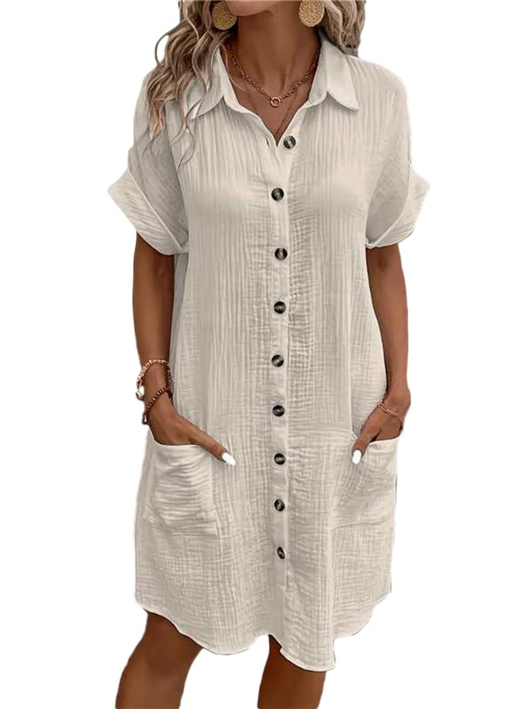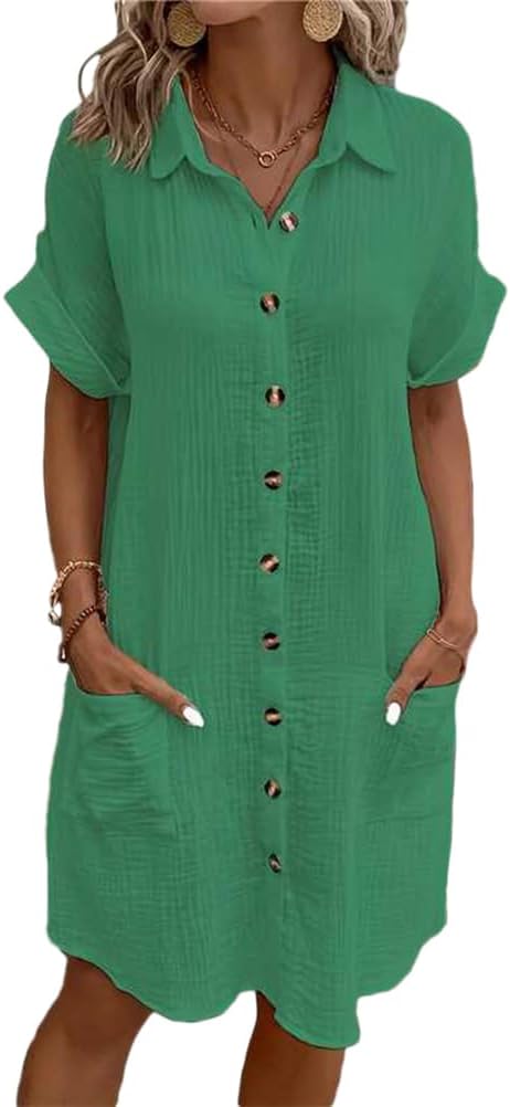 Wow, dieses Blusenkleid von seiveini ist perfekt für den Sommer! Mit lockerer Passform und V-Ausschnitt sitzt es bequem und schmeichelt deiner Figur. Die kurzen Ärmel bedecken deine Arme dezent, und die praktischen Taschen geben dir Stauraum für Kleinigkeiten. Aus weichem, hochwertigem Material, fühlt es sich angenehm auf der Haut an. Ob für die Arbeit, Freizeit, Urlaub oder Party - dieses Kleid macht immer eine gute Figur. In verschiedenen Farben erhältlich, findest du sicher deinen Favoriten. Einfach anziehen und du bist ready für jeden Anlass - stylisch, bequem und voller Charme. Das Must-have für deine Sommer-Garderobe!