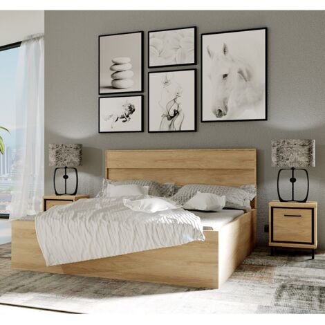 • Lomadox Massivholz Doppelbett 200x200 Cm - Mit 2 Nachttischen Eiche