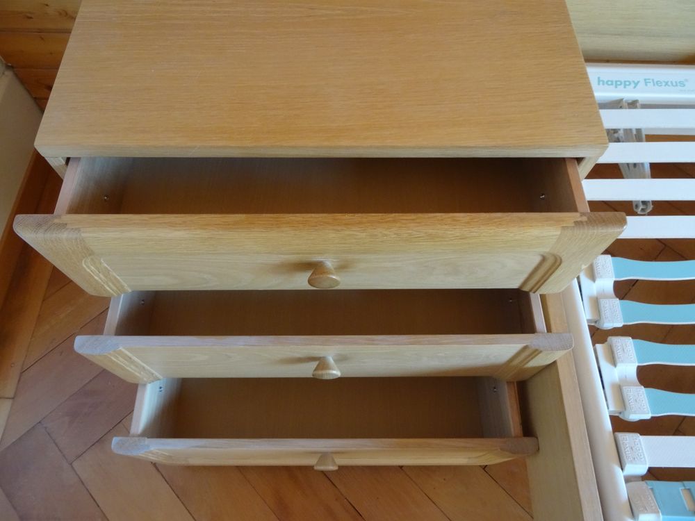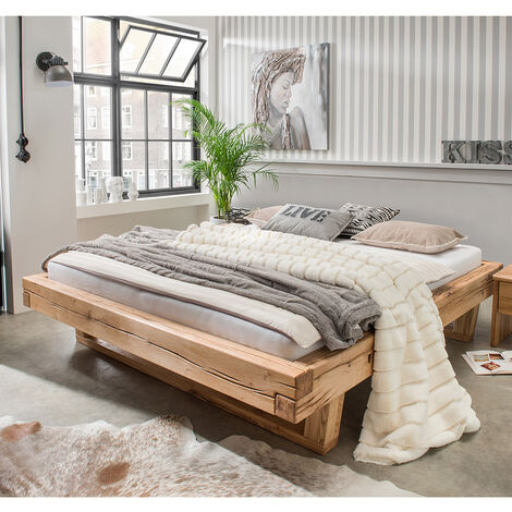 Schlafzimmer-Träume werden wahr! Dieses wunderschöne Massivholz-Doppelbett aus Eiche bringt Natur und Gemütlichkeit in dein Zuhause. Mit 200x200 cm Liegefläche und zwei passenden Nachttischen mit Softclose-Schubladen. Die Massivholzkufen und das elegante Kopfteil machen es zum absoluten Hingucker. Mit natürlichen Wuchsrissen für einen einzigartigen Charakter. Einfache Montage mit bebilderter Anleitung. Bettrahmen-Stärke ca. 9 cm, Belastbarkeit 200 kg pro Seite. Die Nachttische (je 50x42x36 cm) kommen schon montiert. Gesamtmaße ca. 318x88x228 cm - perfekt für ein geräumiges Schlafzimmer. Hol dir jetzt dieses zeitlose Design für erholsame Nächte!