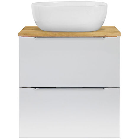 Willst du dein Bad modernisieren? Dieser Lomadox Waschtisch kombiniert weißes Lac mit natürlicher Eiche - ein echter Hingucker! Maße: 60cm breit, 57cm hoch, 46cm tief. Inklusive Keramik-Aufsatzbecken (50x14x40cm) mit 14cm Rand. Fronten aus tiefgezogener MDF in Rillenoptik, Korpus aus melaminbeschichteten Spanplatten. Mit Soft-Close Schubladen und Türen - kein lautes Zuknallen. Drei Griff-Farben enthalten: schwarz, chrom, gold. Wandhängende Montage, Lieferung zerlegt zur Selbstmontage. FSC-zertifiziert für nachhaltige Produktion. Hochwertige Verarbeitung, kratzfest und feuchtigkeitsresistent. Ohne Armatur und Siphon - kannst du nach deinem Geschmack wählen. Einfache Montage mit bebilderter Anleitung. Modernes Design für dein Traumbad!