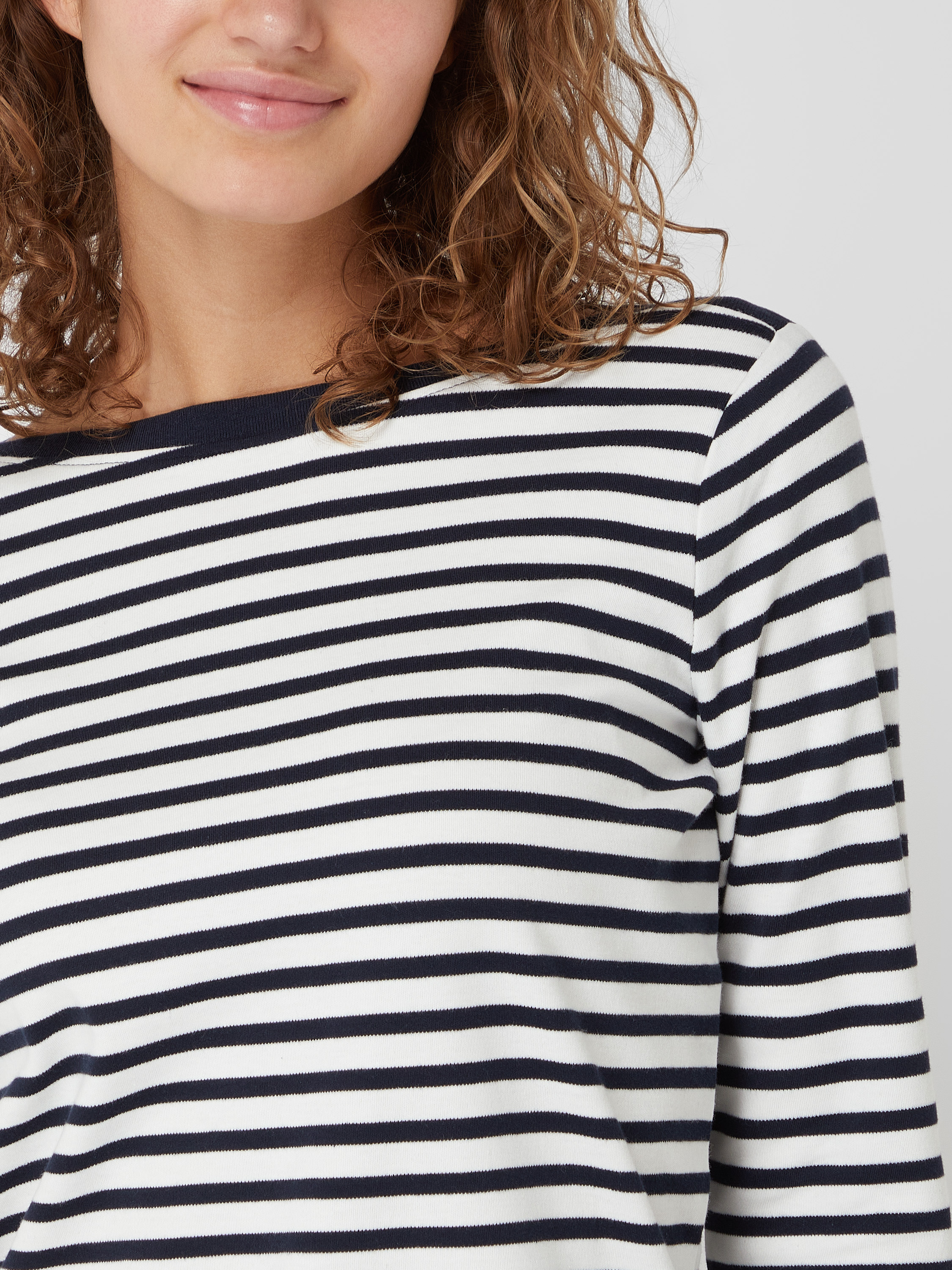 Boah, dieses Longsleeve von TOM TAILOR Denim ist ja mal mega bequem! Der Loose Fit sitzt lässig und nicht zu eng - einfach perfekt für jeden Tag. Die Streifen machen's trendy und die Raffung an den Ärmeln gibt dem ganzen noch das gewisse Etwas. Aus weichem Viskose-Polyester-Elastan Gemisch - fühlt sich an wie eine zweite Haut.