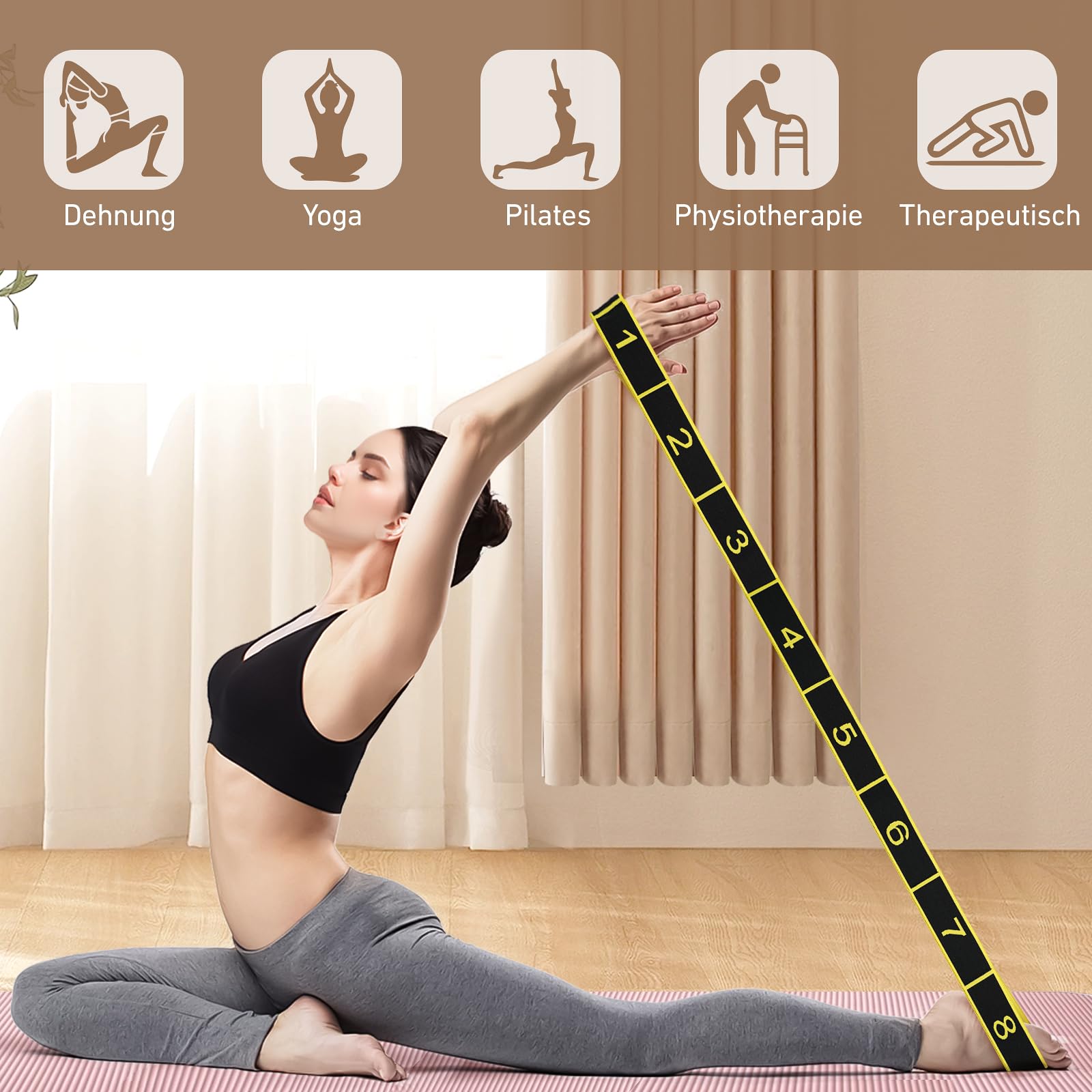 Dehnung und Training in Perfektion! Dieses vielseitige Stretchband mit 8 Schlaufen bietet unendliche Möglichkeiten für dein Workout. Ob Yoga, Pilates, Gymnastik, Latein-Tanz oder Fitness-Training - das Band unterstützt dich bei der Verbesserung von Flexibilität, Beweglichkeit und Kraft. Hergestellt aus hochwertigem, elastischem Material für dauerhafte Leistung. Die verschiedenen Schlaufen ermöglichen unterschiedliche Widerstandsstufen und Griffvarianten für Hände und Füße. Leicht und kompakt - perfekt für Training zu Hause oder unterwegs. Geeignet für alle Altersgruppen und Fitnesslevels. Mit diesem Band kannst du deine Dehnfähigkeit verbessern, deine Muskeln stärken und dein Körperbewusstsein steigern. In ansprechendem Rosa - dein idealer Begleiter für ganzheitliches Training!