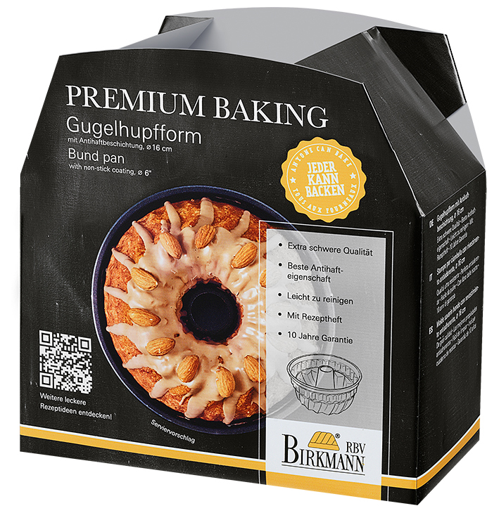 Aluminiumguss bedeutet: super Wärmeleitfähigkeit! Dein Kuchen wird gleichmäßig durchgebacken, ohne kalte Stellen oder angebrannte Ränder. Und bis 200°C hitzebeständig - also auch für Hefegebäck bestens geeignet.