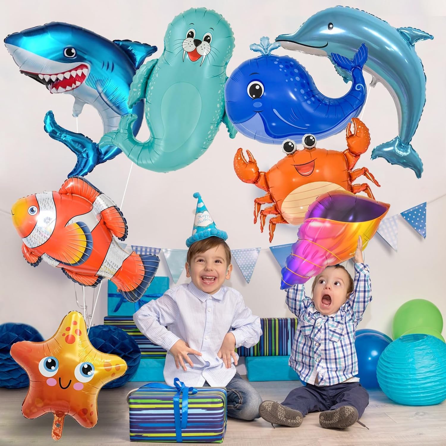 Tauch ein in eine bunte Unterwasserwelt mit diesen süßen Meerestiere-Luftballons! 16 Stück mit 8 verschiedenen Motiven - je 2 von jedem Design. Jeder Ballon ist 45cm groß und aus hochwertigem Latex. Leuchtende Farben und klare Drucke, die nicht so schnell verblassen. Perfekt für Kindergeburtstage, Meerestiere-Partys oder als Deko für's Kinderzimmer. Einfach mit Handpumpe aufblasen und mit den beiliegenden Bändern aufhängen. Ungiftig und umweltfreundlich. Damit wird jede Party zum unvergesslichen Erlebnis!