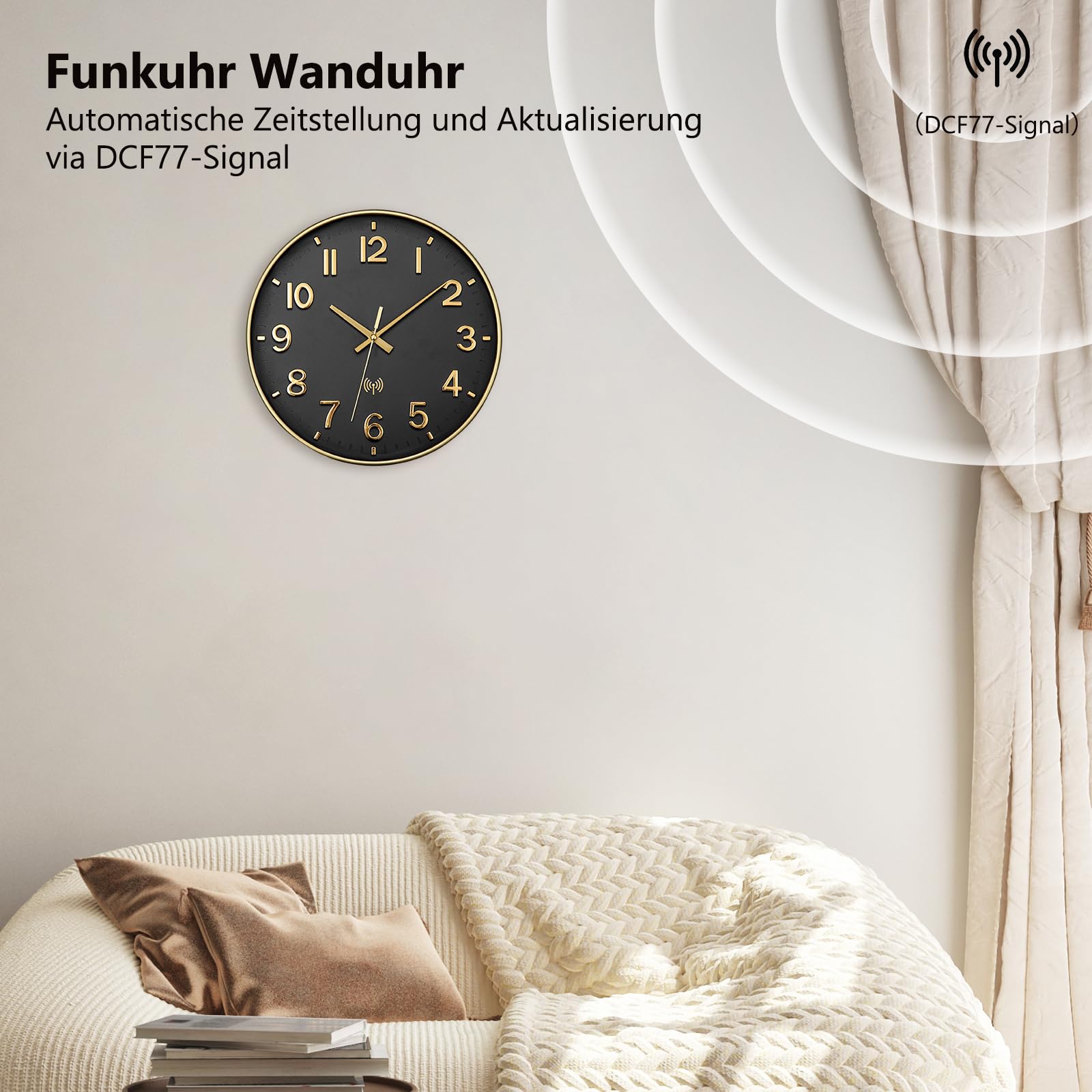 Diese Uhr ist einfach genial! Sie zeigt nicht nur sekundengenau die Zeit an, sondern auch Temperatur und Luftfeuchtigkeit - alles auf einen Blick. Durch die DCF77-Funktechnologie stellt sie sich automatisch auf die richtige Zeit ein - nie mehr umstellen! Und das Beste: Sie tickt absolut lautlos! Perfekt für Schlafzimmer, Büro oder Wohnzimmer. Das moderne weiße Design mit 30cm Durchmesser passt in jeden Raum. Die farbige Komfortzone zeigt dir sofort, ob Temperatur und Luftfeuchtigkeit im idealen Bereich liegen. Betrieb mit nur einer AA-Batterie (nicht im Lieferumfang) - kein lästiges Kabel! Einfach Batterie rein, Uhr aufhängen und fertig. Sie synchronisiert sich täglich automatisch mit dem Zeitsignal der Physikalisch-Technischen Bundesanstalt. So hast du immer die genaueste Zeit! Perfekt als Küchenuhr, Wohnzimmeruhr oder als Geschenk für die Einrichtung. Ein echter Hingucker, der nicht nur schick aussieht, sondern auch praktisch ist!