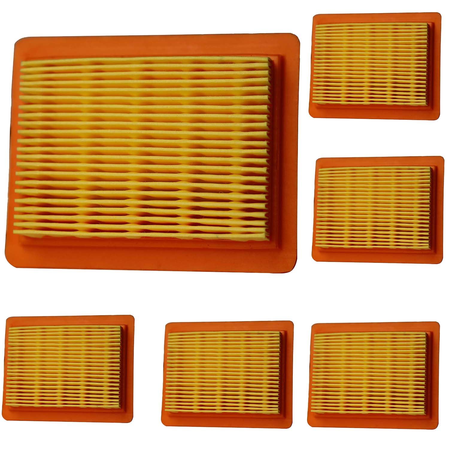 Halte deinen Rasentrimmer in Top-Form! Dieses Set mit 5 Luftfiltern ersetzt die Originalteilnummer 4180 141 0300 und passt perfekt für KM91R, KM131, FS89 und viele weitere Modelle. Jeder Filter misst 7,6x6,5x2,2cm und besteht aus hochwertigem Filterpapier mit Gummidichtung für optimale Filtration. Die orange Farbe macht Verschmutzungen sofort sichtbar. Einfach den alten Filter entfernen, neuen einsetzen und schon läuft dein Gerät wieder mit voller Leistung. Das 5er-Set gibt dir genug Ersatz für die ganze Saison - so sparst du Zeit und Geld. Perfekt für alle, die ihre Gartengeräte selbst warten möchten. Einfach wechseln und weiterarbeiten!