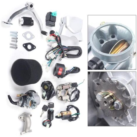 Alter, dieser HMParts 50cc 2-Takt Motor ist ja mal die perfekte Lösung wenn dein alter Motor schlapp macht! Mit 49cc Hubraum und 6,6kW/9PS Leistung bringt der dein Pit Bike, Dirt Bike oder NRG50 wieder richtig auf Touren. Luftgekühlt und mit Kickstarter - einfach und zuverlässig. Automatikgetriebe mit Fliehkraftkupplung macht das Fahren easy. Komplett montiert geliefert inklusive Kupplung, Ansaugstutzen, Zündkerze und Ritzel 420/11 Zähne. Passt perfekt für KXD Pro, Nitro und ähnliche Modelle. Motornummer 1E40FMB - genau das richtige Ersatzteil. Einfach einbauen (mit etwas Fachwissen) und sich über neuen Fahrspaß freuen!