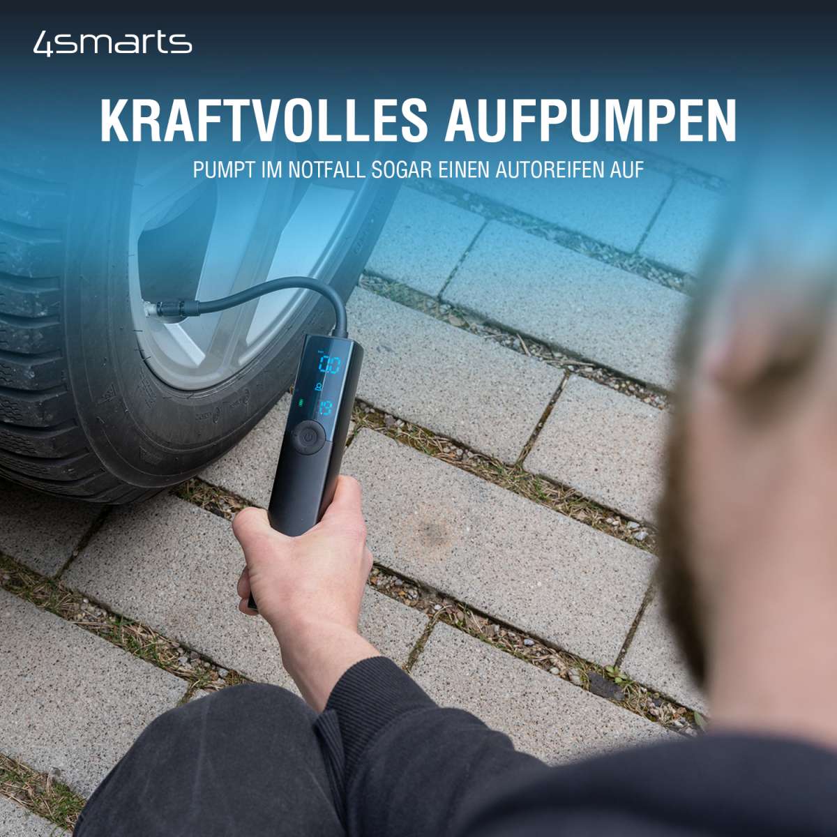 Nie wieder platte Reifen! Der VoltPump X ist dein neuer bester Freund für unterwegs. Mit 150 PSI und 18 l/min Luftstrom pumpt er Autos, Fahrräder, Motorräder und sogar Bälle und aufblasbare Sachen super schnell auf. Das Beste: Er ist komplett kabellos! Zwei 2000mAh Akkus geben dir genug Power für mehrere Reifen. Die automatische Abschaltung ist genial - einfach gewünschten Druck einstellen und die Pumpe stoppt von alleine. Mit USB-C Schnellladung in 3-4 Stunden wieder voll. Fünf intelligente Modi für Auto, Motorrad, Fahrrad, Ball und Custom-Einstellung machen es super einfach. Das LED-Licht hilft dir auch nachts, und alle Adapter sind praktisch im Gerät verstaut. Ob auf Reisen, Camping oder einfach für zu Hause - dieser Kompressor ist immer griffbereit. Deutscher Technik und CE-zertifiziert - da kannst du dich drauf verlassen! Einfach in's Handschuhfach und beruhigt losfahren.