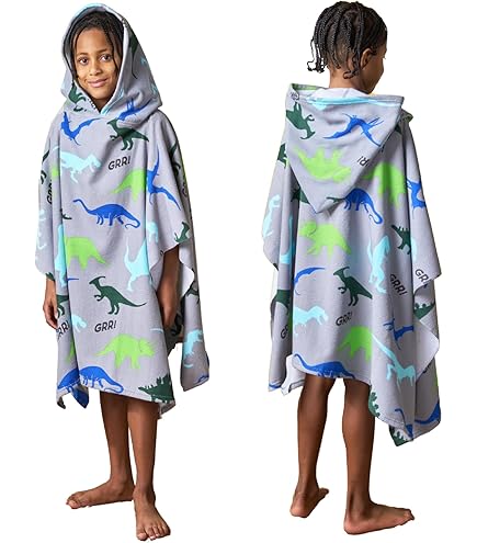 Wow, dieser Dino-Badeponcho ist der Hit für kleine Wasserratten! Das superweiche Mikrofaser-Material saugt Wasser viel schneller auf als normale Baumwolle - dein Kind ist im Nu trocken und kuschelig warm. Mit der praktischen Kapuze trocknest du sogar die Haare gleich mit, perfekt für windige Tage am Strand! Die Druckknöpfe an den Seiten halten alles sicher verschlossen, nichts rutscht mehr runter. Es gibt verschiedene Größen: 60x60cm für Kleine ab 100cm, 60x80cm für Größere ab 130cm, und sogar Erwachsenen-Größen. Ideal für Schwimmbad, Strand, Surfen oder einfach als kuscheligen Bademantel zu Hause. Macht auch super was her als Geschenk!