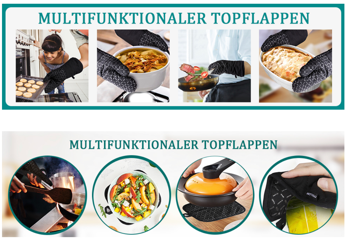 • Lustige Flamingo Ofenhandschuhe & Topflappen Set - Hitzebeständig Bis 180°C, Perfekt Für Küche, Grill Und Backofen