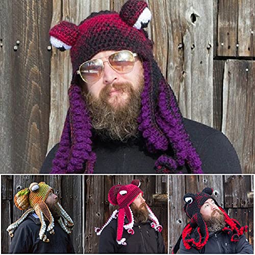 Achtung, lustig! Diese Tintenfisch-Mütze mit ihren großen Augen und acht langen Tentakeln sorgt garantiert für Lacher. Perfekt für Halloween, Cosplay-Events oder Partys - damit bist du der Mittelpunkt! Handgewebt aus weicher Baumwollwolle, kuschelig warm und winddicht. Die langen Tentakel wärmen sogar Hals und Ohren mit. Mit einem Hutumfang von 56-60cm passt sie den meisten Erwachsenen und Jugendlichen. Ein richtig kreatives Geschenk für verrückte Freunde oder Familienmitglieder, die etwas Abwechslung lieben. Ob auf dem Winterfest, der Karnevalsparty oder einfach nur für gute Laune an kalten Tagen - dieser Octopus-Hut ist immer eine gute Idee! In schwarz-rot erhältlich, wiegt etwa 300g und fühlt sich angenehm auf dem Kopf an. Maschinenwäsche schonend, am besten an der Luft trocknen lassen. Für Unisex - sowohl Frauen als auch Männer haben ihren Spaß damit!