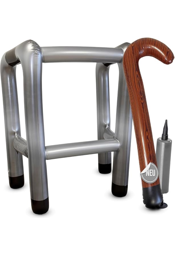 Diese aufblasbare Gehhilfe ist einfach mega-lustig! Perfekt als Gag-Geschenk für Oma und Opa mit Humor - die werden sich totlachen! Aber auch super für Karneval, Halloween oder jede andere Feten, wo du einen ulkigen Auftritt hinlegen willst. Einfach aufblasen und schon hast du dein verrücktes Accessoire! Aus stabilem Material, hält auch mal einen unsanften Umgang aus. Bringt garantiert jeden zum Lachen und ist der absolute Hingucker auf jeder Party. Ob als Scherzgeschenk zum Geburtstag oder als Teil deines Kostüms - damit bist du der Star jeder Feier! Einfach aufblasen, loslaufen und die Lacher genießen!