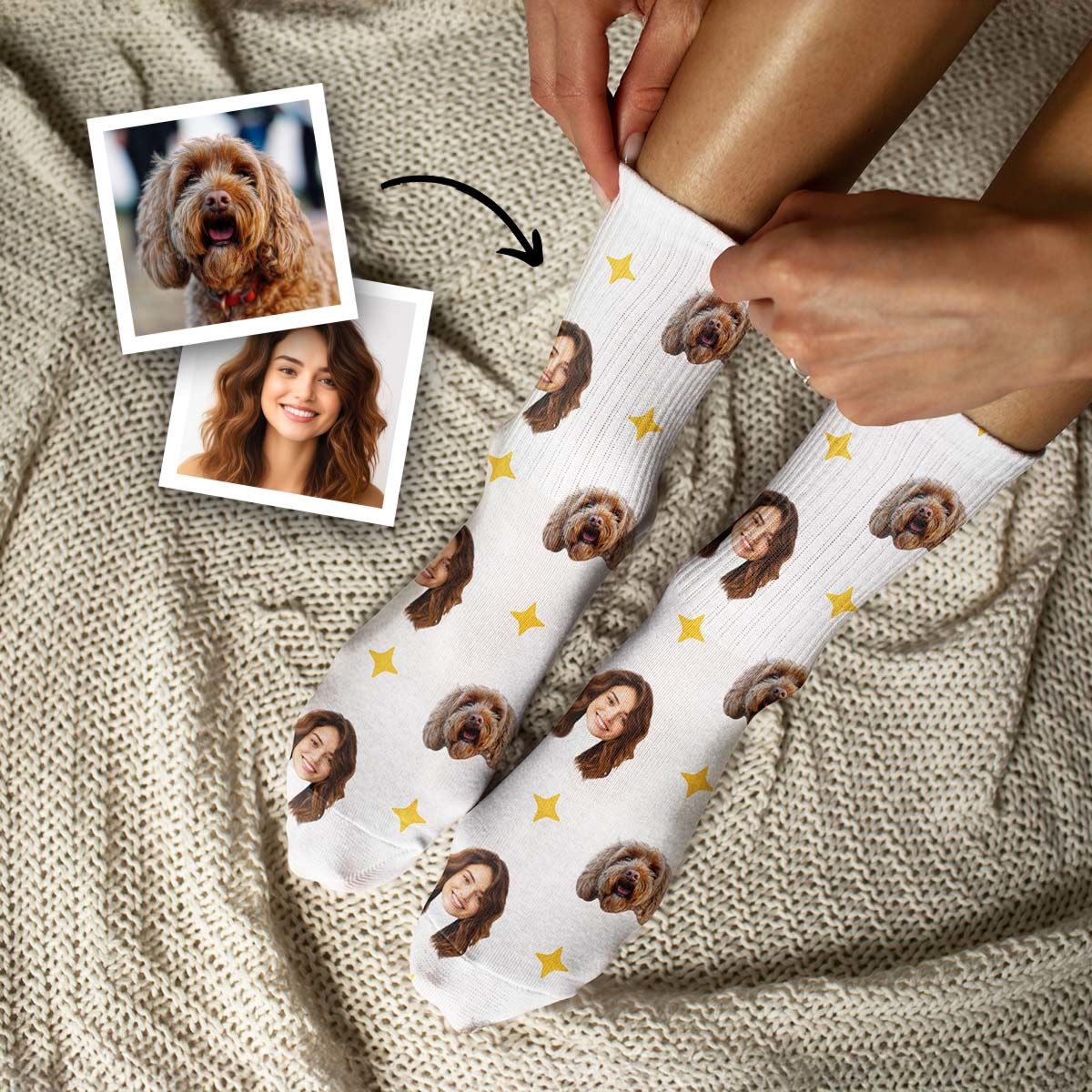 Dein Gesicht auf Socken - wie genial ist das denn? Lade einfach dein Lieblingsfoto hoch und schon bekommst du einzigartige Socken mit deinem Motiv! Perfekt als Geschenk für Papa, Mama, Freunde oder Geschwister. Aus 95% Polyester und 5% Elastan sind die Socken superweich, dehnbar und angenehm zu tragen. Sie sind atmungsaktiv, feuchtigkeitsabsorbierend und behalten ihre Form. Für Fußlängen 36-45cm geeignet - also für die meisten Erwachsenen. Ob zum Sport, im Alltag oder als lustige Deko - diese Socken sorgen garantiert für Lacher! Einfach Bild hochladen, Text hinzufügen und bestellen. Das perfekte Geschenk für Geburtstage, Weihnachten oder einfach mal so!