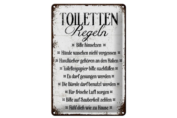 Humor fürs stille Örtchen! Dieses lustige Metallschild mit Toilettenpapier-Etikette bringt Schmunzler in jedes Badezimmer. Im Vintage-Design mit witzigen Anweisungen zur korrekten Toilettenpapier-Verwendung.