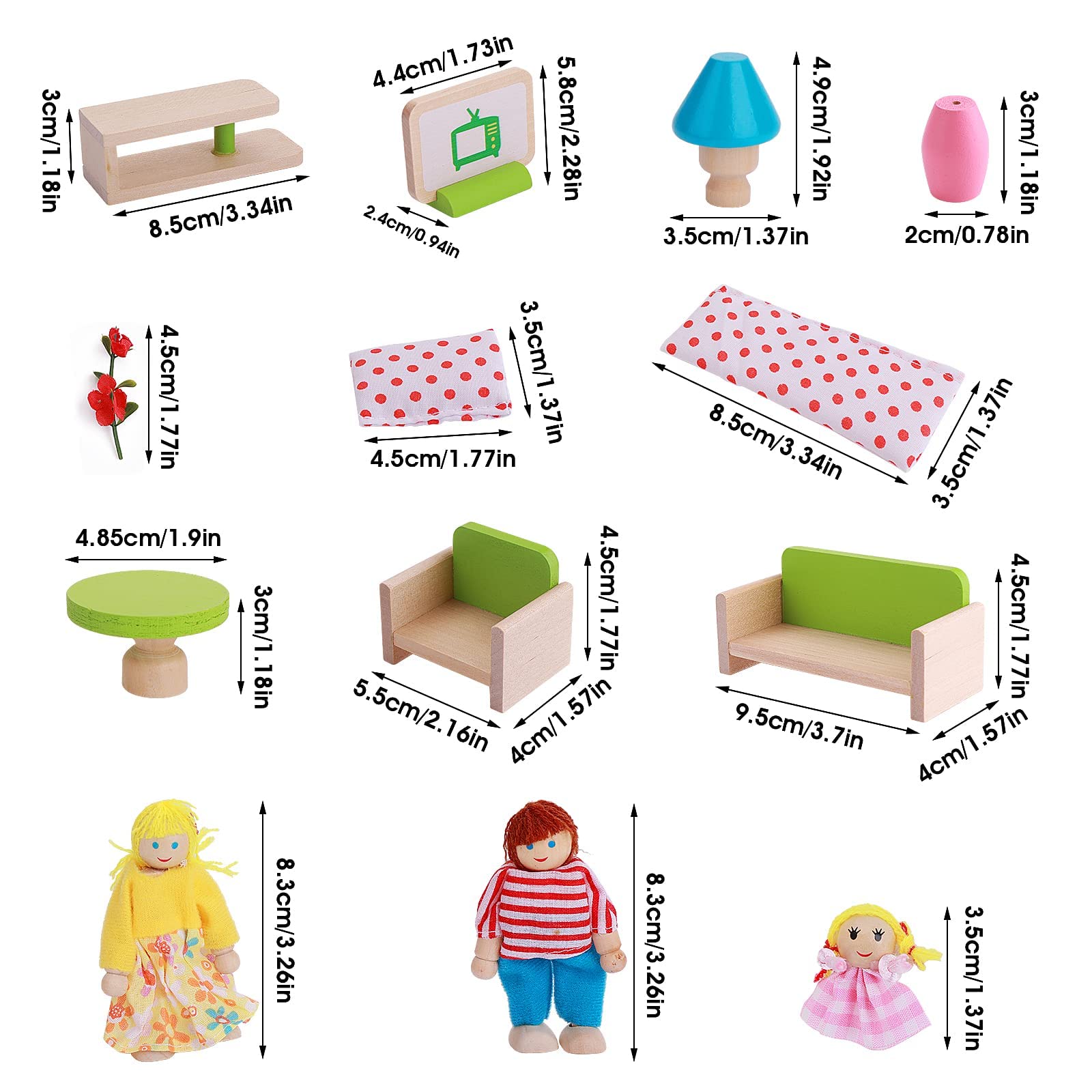Cobee Puppenhaus Möbel Set Aus Holz - 12-teilig Mit Familienpuppen