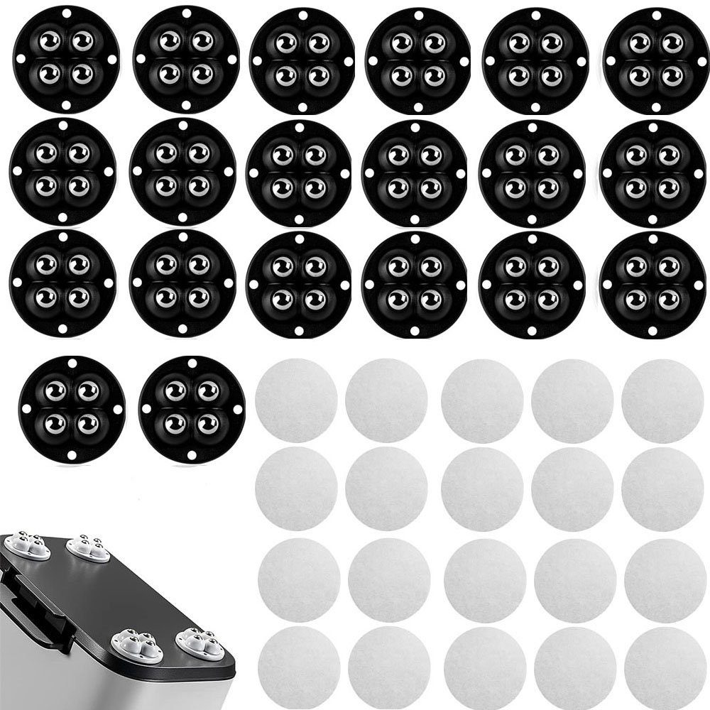 Endlich Möbel bewegen ohne Stress! Diese 28 Alriedy Kugelrollen machen's möglich. Mit 360°-Beweglichkeit gleiten deine Möbel und Geräte mühelos in jede Richtung. Jede Rolle hält bis zu 100 lbs (45 kg) aus - absolut stabil! Aus hochwertigem ABS-Kunststoff und rostfreiem Edelstahl mit massiven Stahlkugeln. Super leise, kratzen keine Böden und sind perfekt für Parkett und Laminat. Selbstklebend montiert - einfach Schutzfolie abziehen, ankleben und 24 Stunden warten. Kein Bohren nötig! Ideal für Küchengeräte, Schränke, Tische, Aufbewahrungsboxen. Dein Leben wird so viel einfacher!