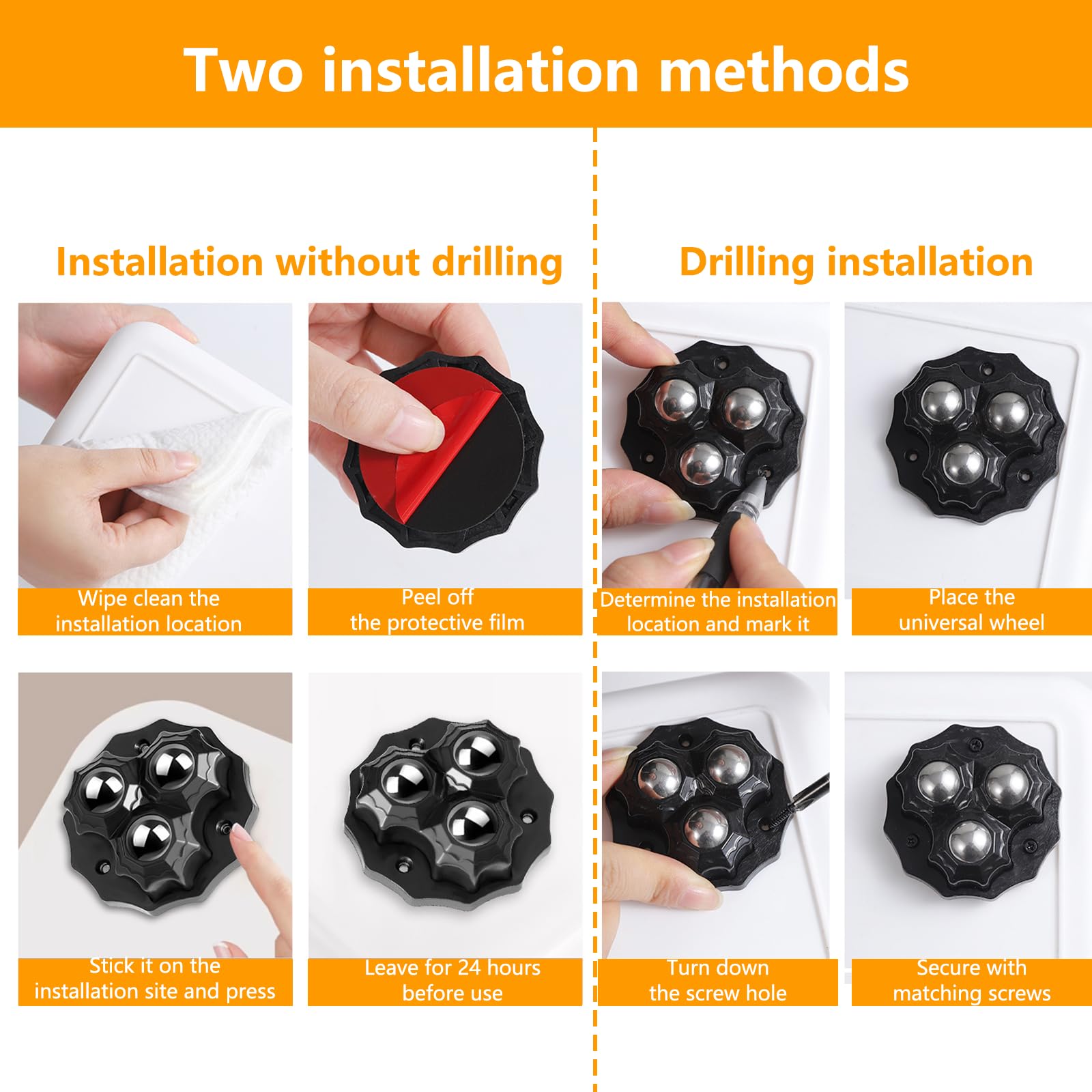 Die Kugeln aus Edelstahl 304 und das robuste ABS-Material machen diese Rollen extrem langlebig. Sie rosten nicht und verschleißen kaum - selbst bei täglicher Belastung.