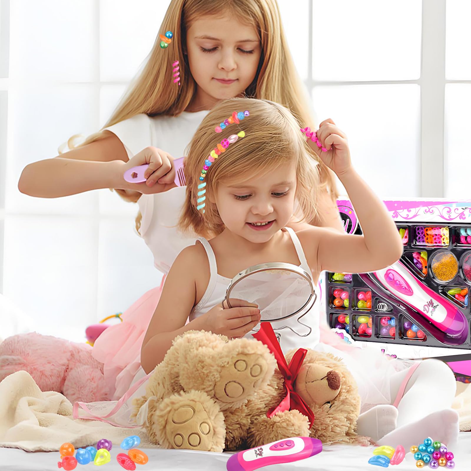 Mädchen ab 5 Jahren aufgepasst! Mit dieser genialen Haarflechtmaschine von OSDUE werden eure Frisuren zum absoluten Hingucker. Das Set enthält eine Flechtmaschine (22,5x4cm oder 27,5x5cm), einen Kamm und jede Menge bunte Perlen in verschiedenen Formen und Farben. Aus hochwertigem ABS-Material gefertigt ist die Maschine langlebig und die Perlen können immer wieder verwendet werden. So einfach funktioniert's: Perlen auf den Haken fädeln, Haare einklicken, Knopf drücken und schon entstehen wunderschöne geflochtene Zöpfe mit bunten Akzenten! Perfekt für glattes oder lockiges Haar - egal ob lang oder mittellang. Dieses DIY-Set fördert die Kreativität, Farbwahrnehmung und ästhetischen Fähigkeiten deiner Tochter. Ob für Spieltage, Übernachtungspartys, Geburtstage oder einfach nur für den Alltag - hier entstehen einzigartige Frisuren, die garantiert auffallen. Ein fantastisches Geschenk für Mädchen zwischen 5 und 12 Jahren, das für stundenlangen Spielspaß sorgt und ganz nebenbei noch die Feinmotorik trainiert!