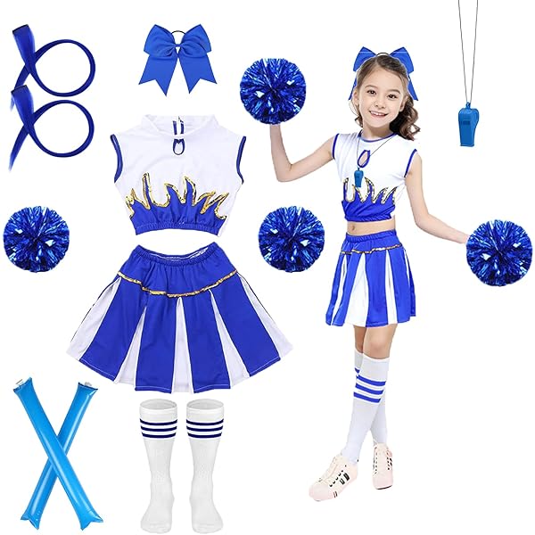Deine Tochter träumt vom Cheerleading? Dieses komplette Kostüm-Set macht sie zur Star-Cheerleaderin! Mit glitzerndem Langarm-Kleid, süßer Schleifen-Kopfbedeckung, 2 Pompoms und gestreiften Socken. Das integrierte Slip-Innenfutter gibt vollen Schutz und Bewegungsfreiheit. Perfekt für Halloween, Karneval, Schulaufführungen oder Mottopartys. Dein Mädchen wird aus dem Strahlen nicht mehr rauskommen! Einfach anziehen und los geht die Show. Mach deiner kleinen Cheerleaderin eine Riesenfreude und sie wird der Star jeder Party! Einfach bestellen und staunen, wie süß sie aussieht!