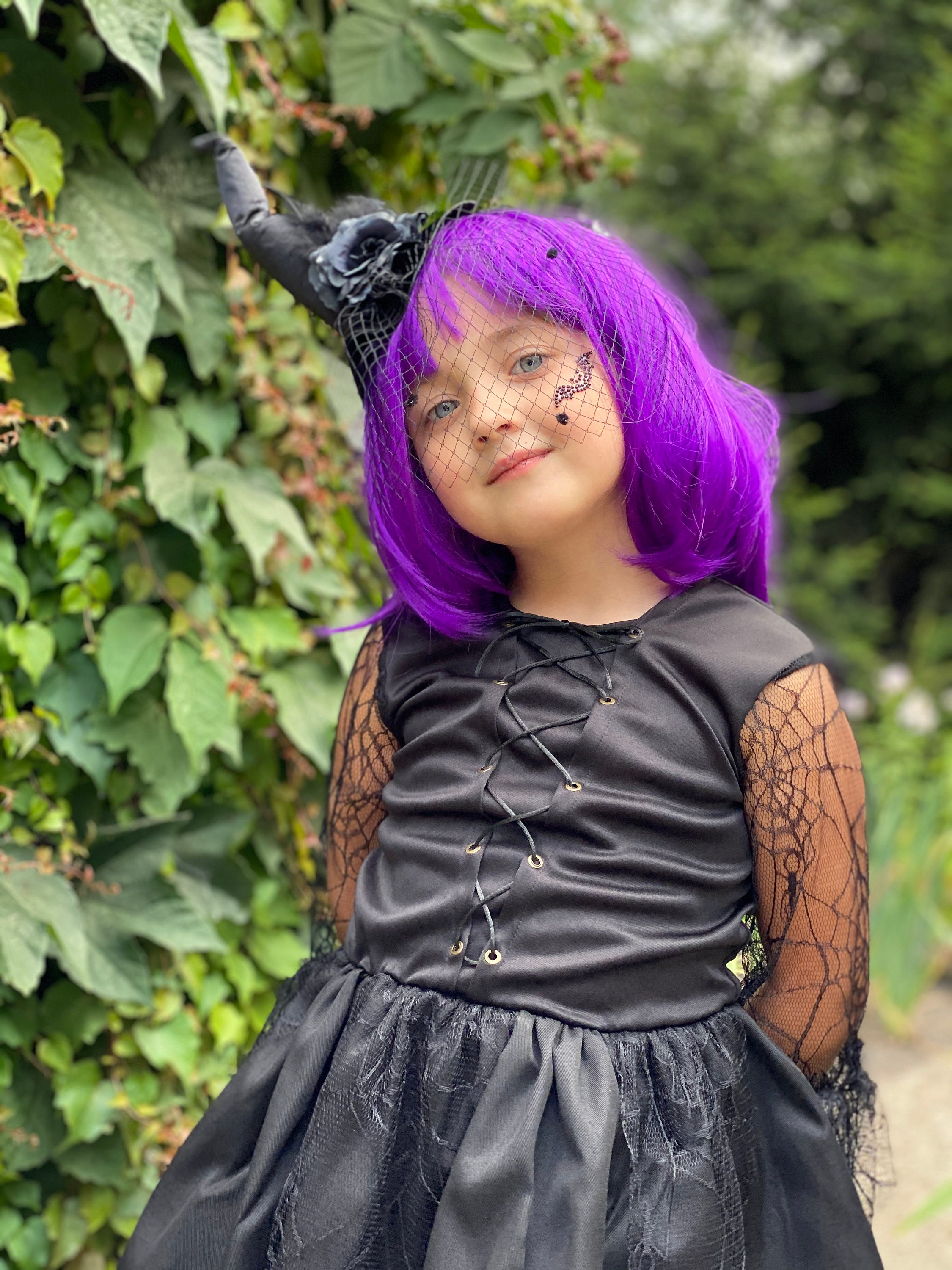 Für die kleine Hexe in deinem Leben! Dieses süße Hexenkostüm besteht aus einem fluffigen Tutu und einem coolen Hexenhut. In schwarz-lila mit glitzernden Pailletten - einfach magisch! Der Rock hat drei Lagen Netzstoff und sieht aus wie ein Spinnennetz. Super für Halloween, Karneval oder Mottopartys. Der Hut ist mit Federn und Blumen verziert - richtig edel! Deine Tochter wird der Star auf jeder Party! Leicht zu tragen und super bequem. Perfekt als Geschenk oder einfach mal für sich selbst. Sieht nicht nur gut aus, sondern macht auch noch Spaß! Einfach anziehen und in die Rolle der kleinen Hexe schlüpfen! Die anderen werden staunen!